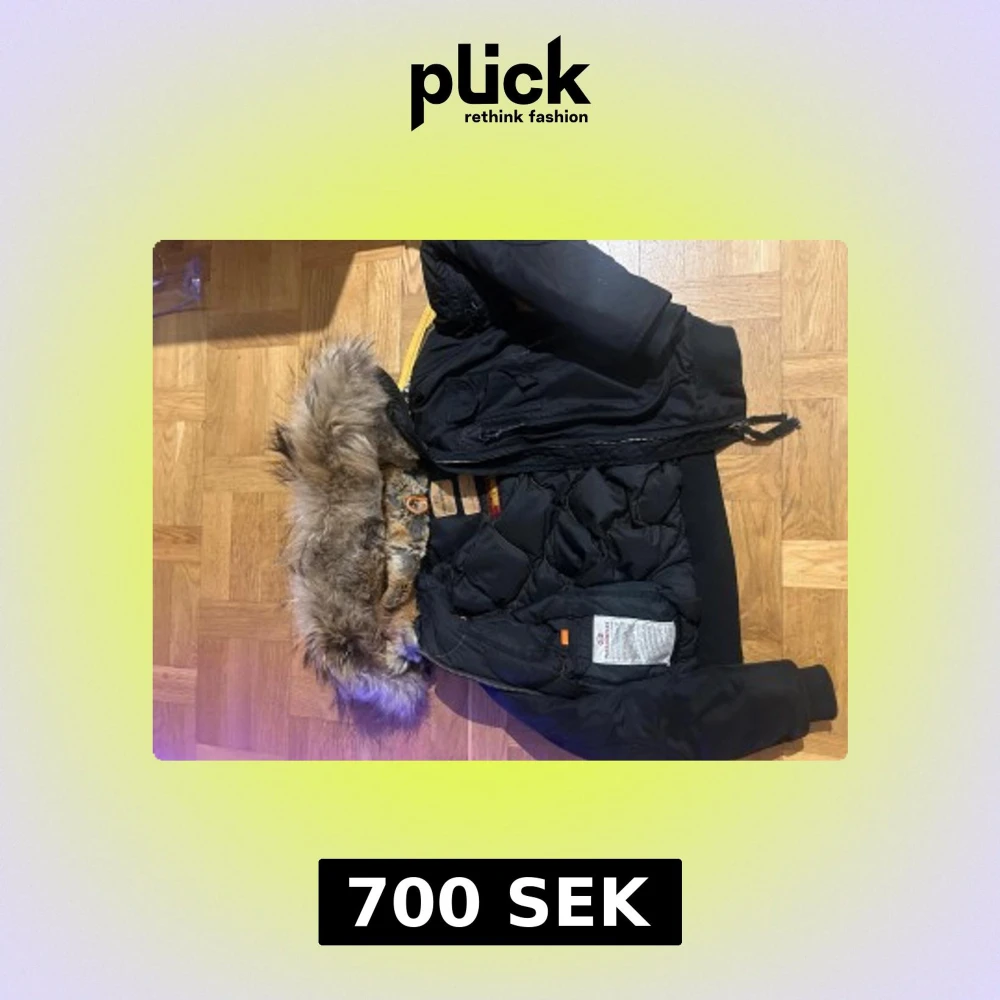 Grym svart pufferjacka från Parajumpers med fet päls på huvan och snygga detaljer som patch på ärmen och orange hängare. Jackan har dragkedja, quiltad insida och är perfekt för kalla dagar. Riktigt street och varm vibe.