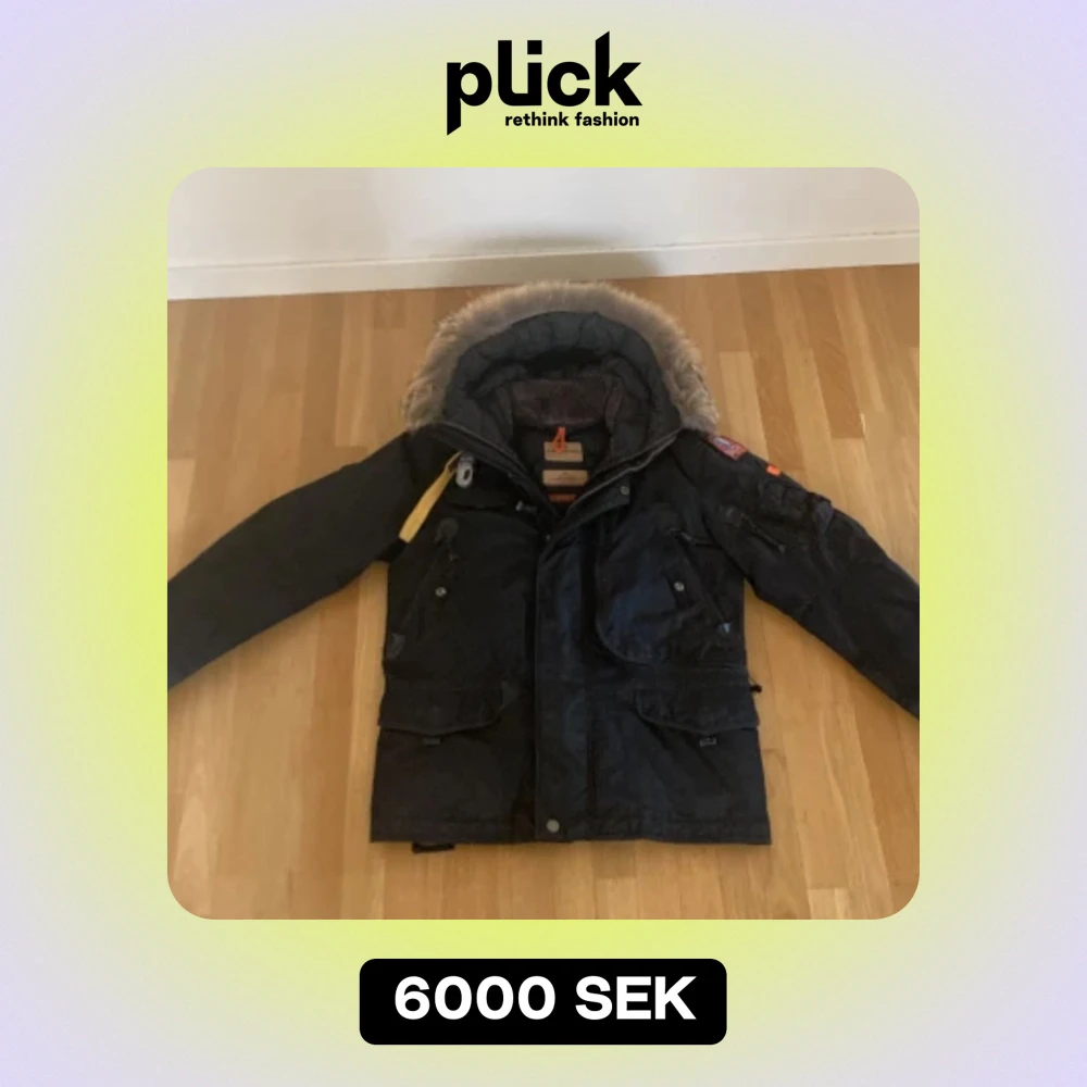 Säljer en svart Parajumpers vinterjacka i storlek small. Jackan har en avtagbar pälsfodrad huva och flera praktiska fickor. Den är perfekt för kalla vinterdagar och har snygga detaljer som en gul rem och en PJS-logga på ärmen. Dragkedja och knappar framtill för extra värme.🖤obs ‼️ endast frakt. Frakt PostNord