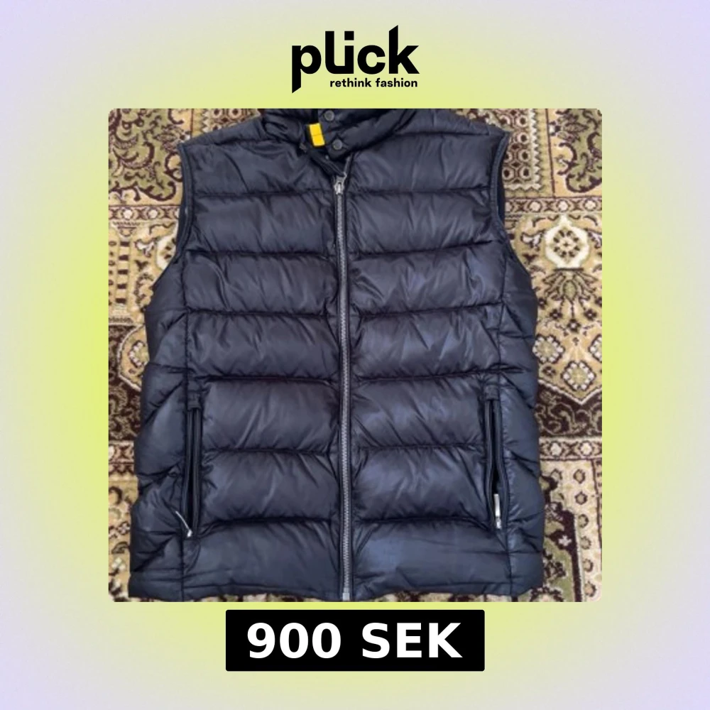 Snygg svart dunväst från Parajumpers, modell SHEEN. Västen har quiltad design, två dragkedjeförsedda fickor och hög krage med gul detalj. Insidan är ljusgrå och har flera etiketter med coola detaljer. Perfekt att slänga på över en hoodie.