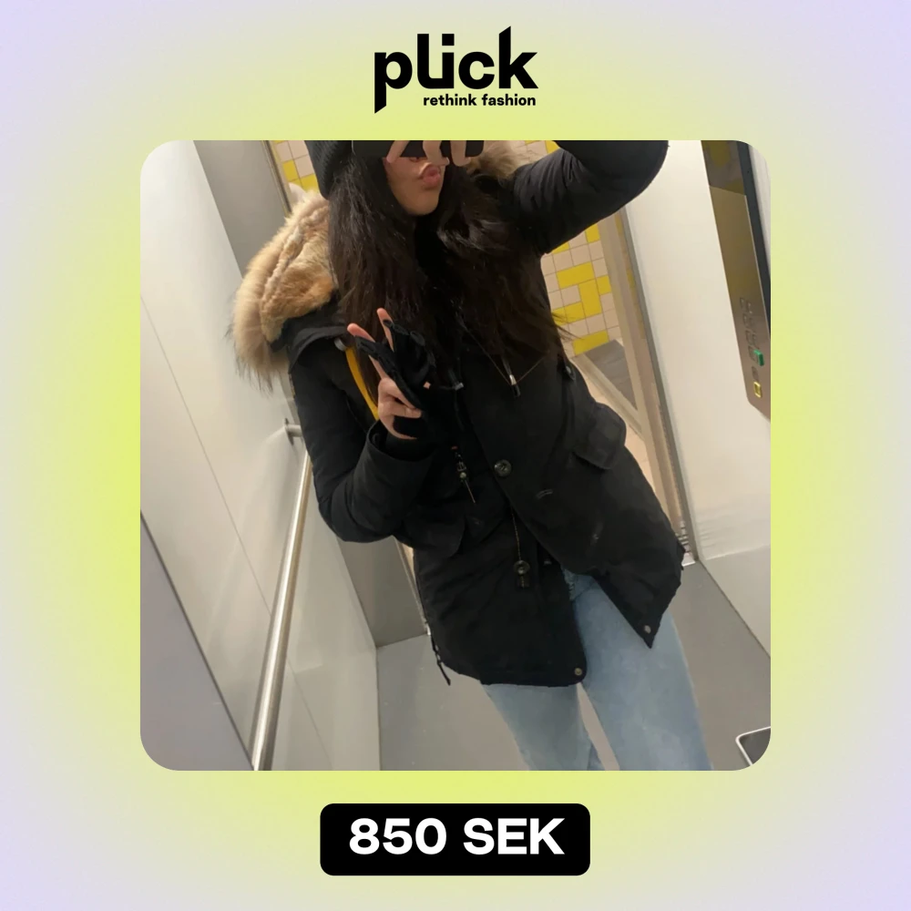 Säljer en svart parkajacka med mysig päls på huvan. Perfekt för kalla vinterdagar! Jackan har långa ärmar och praktiska fickor.🖤Äkta jacka och äkta päls