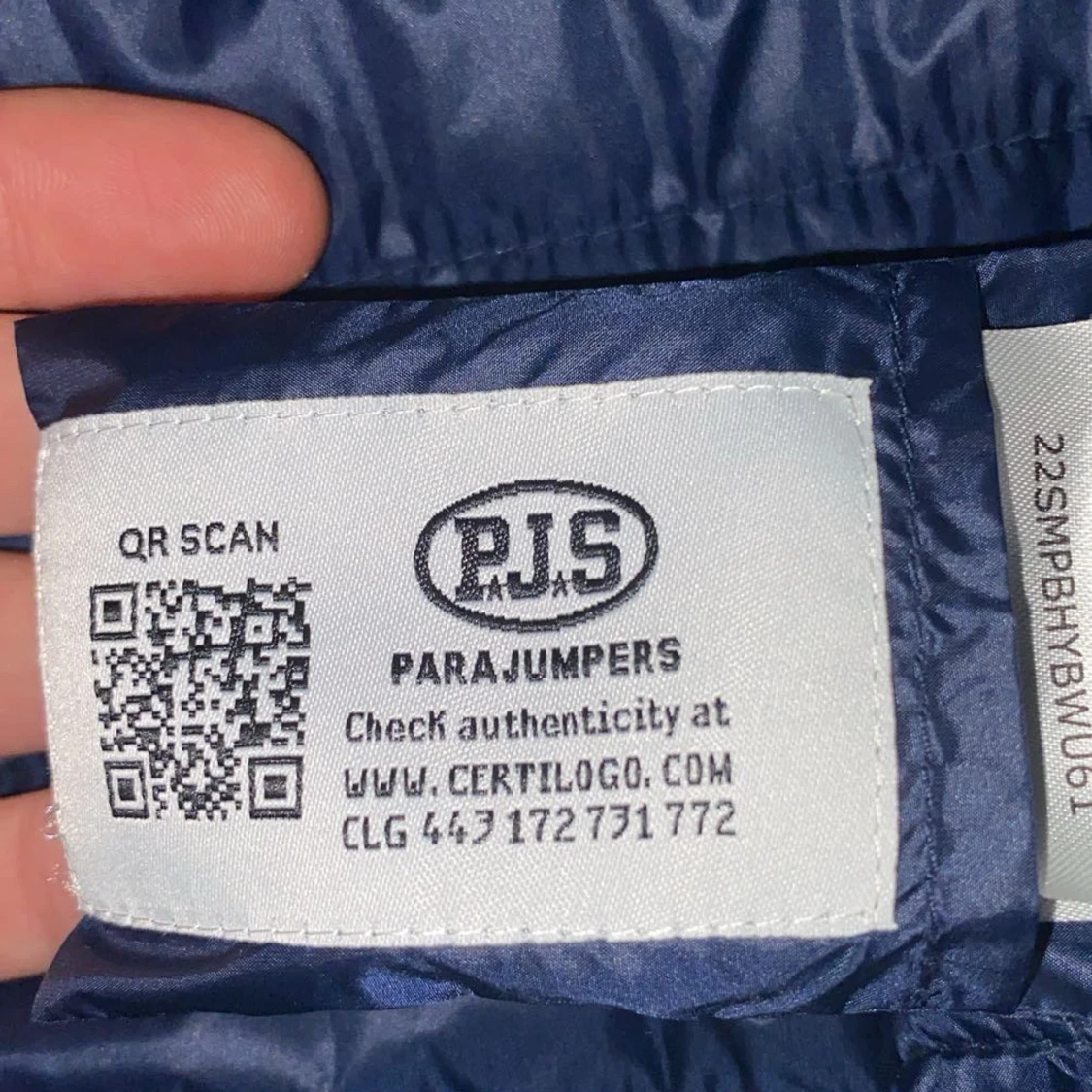 Snygg mörkblå pufferjacka från Parajumpers med quiltad insida och coola orange detaljer. Jackan har dragkedja och klassisk PJS-logga på insidan. Perfekt för dig som vill ha en stilren och sportig look under höst och vinter.