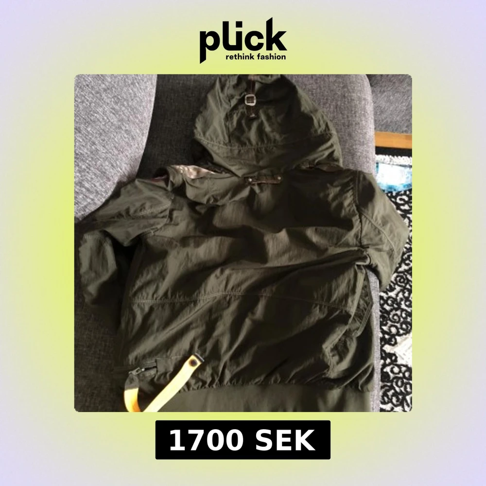 Snygg grön jacka från Parajumpers med huva och flera praktiska fickor. Jackan har en dragkedja framtill och en gul detalj vid kragen. Perfekt för en cool och avslappnad stil. Ny pris ca 5500kr