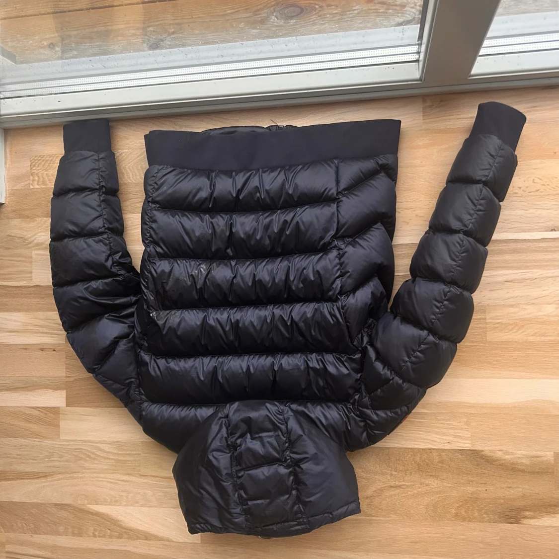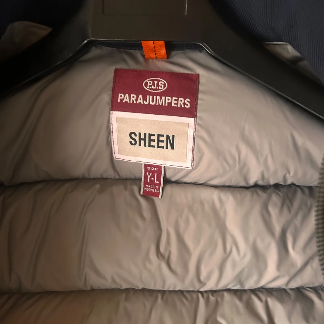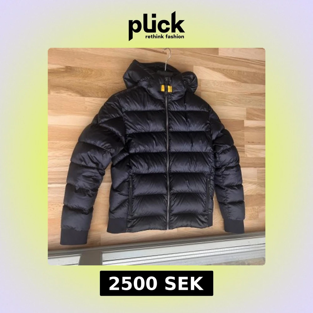 Snygg svart dunjacka från Parajumpers, modell Sheen. Jackan har en puffig look, huva och dragkedja framtill. Klassiska ribbade muddar vid ärmslut och nederkant. Perfekt för kalla dagar och riktigt stilren med diskreta detaljer och gul rem vid halsen. Passar till folk mellan 165-175