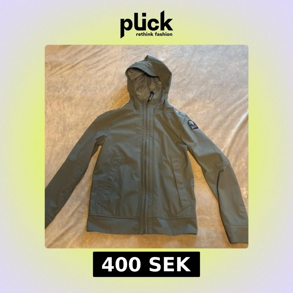 Säljer en grön softshelljacka från Parajumpers med huva och dragkedja framtill. Jackan har två snedställda fickor, lång ärm och en snygg patch på ena axeln. Perfekt för dig som vill ha en stilren och funktionell jacka till vardags.