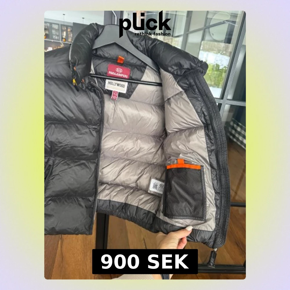 Snygg svart dunjacka från Parajumpers med grå insida och coolt patch på ärmen. Jackan har dragkedja, hög krage och praktiska fickor. Perfekt för kalla dagar och har en sportig vibe med orange detaljer och quiltad design.