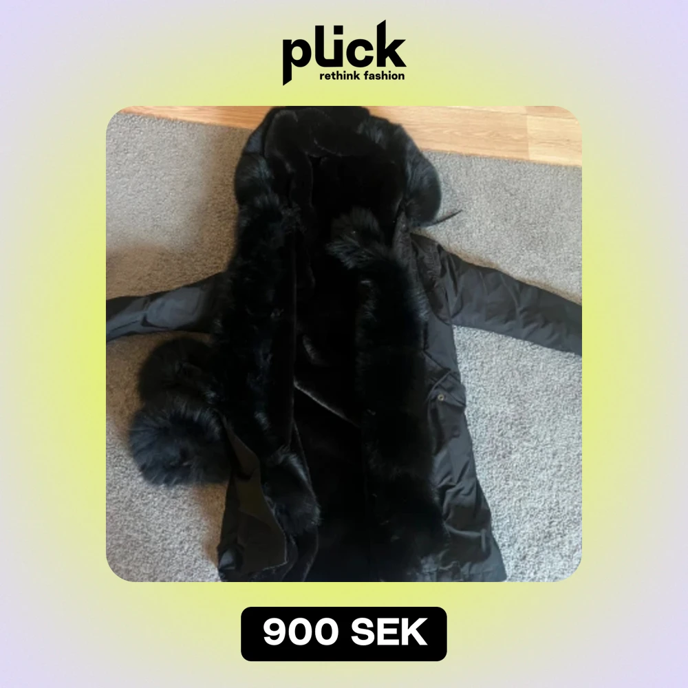 En svart parka jacka i äkta påls köpt från Garoff i storlek S. Anvånd ett fåtal gånger och i ett mycket bra skick. Jag valde att dra bort pälsen från ärmarna, men det går alltid att sätta tillbaka och om de önskas säg till!