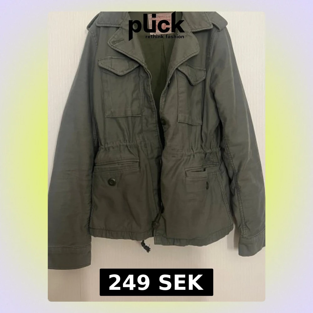 Säljer en grön parkajacka från Levi's i storlek XS. Jackan har flera fickor med lock och knappar, dragsko i midjan och klassisk krage. Tillverkad i bomullsmaterial och har en loose passform som ger en chill vibe.