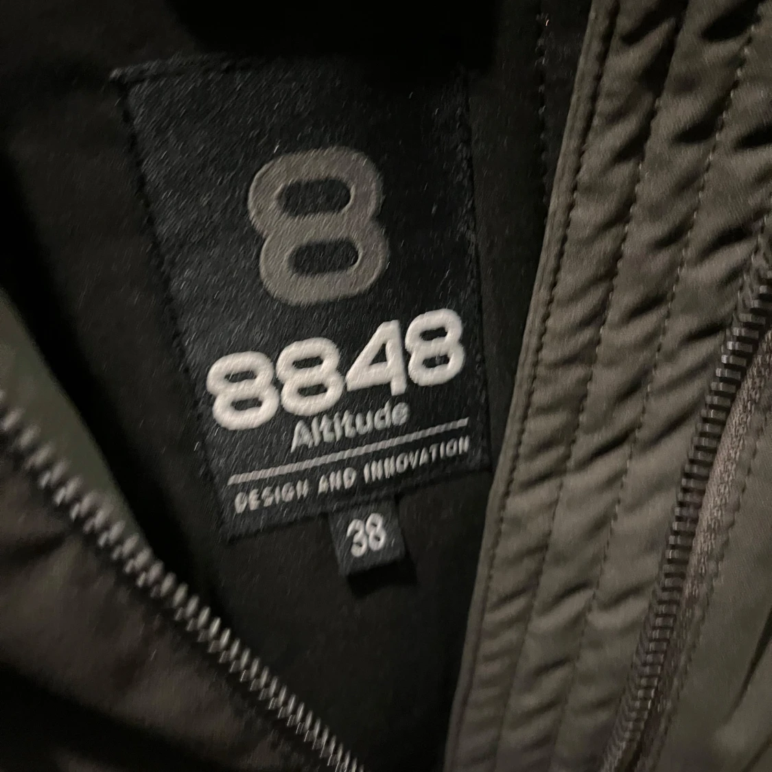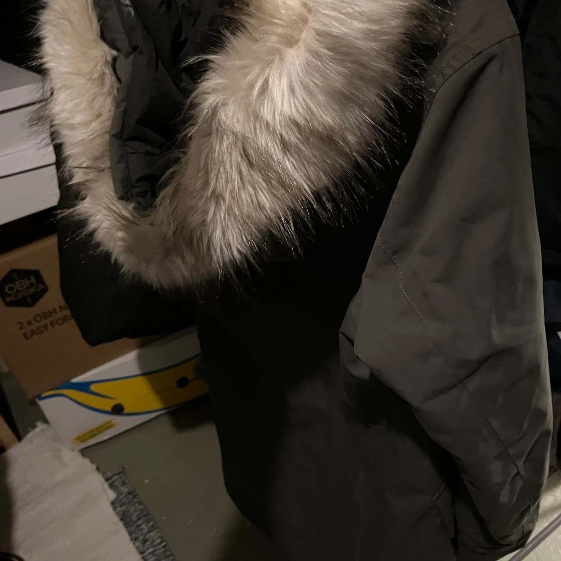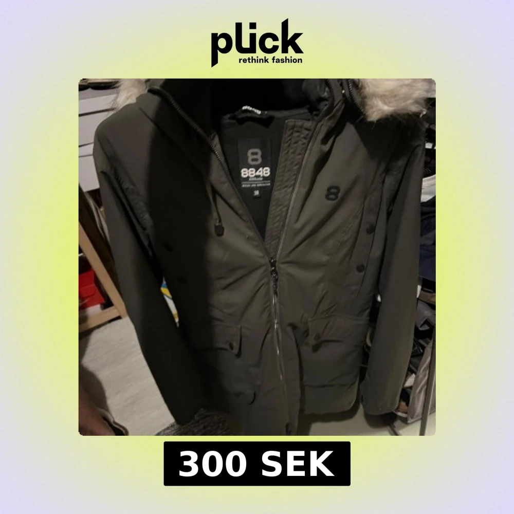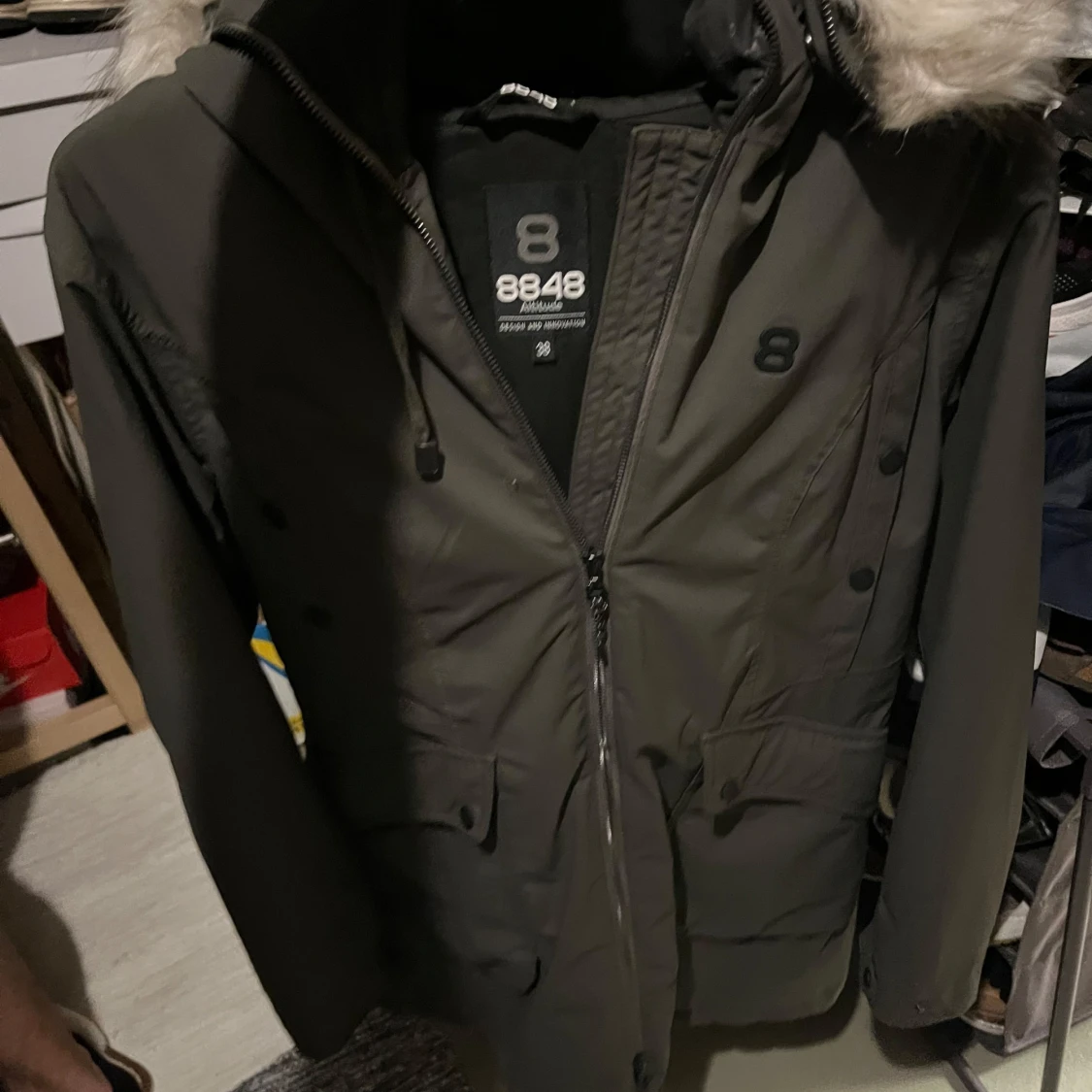 Mörkgrön parkasjacka från 8848 Altitude med huva och snygg fuskpäls. Jackan har dragkedja, knappar och flera fickor framtill. Perfekt för kalla dagar med sin långa modell och stilrena look.
