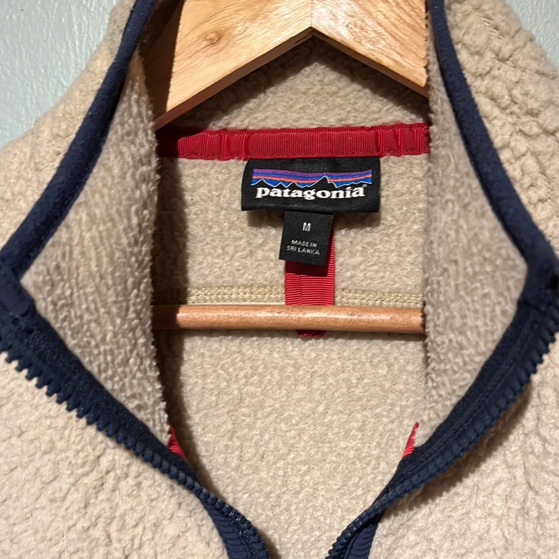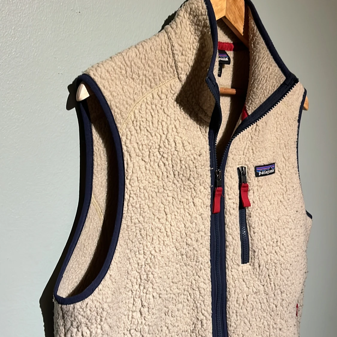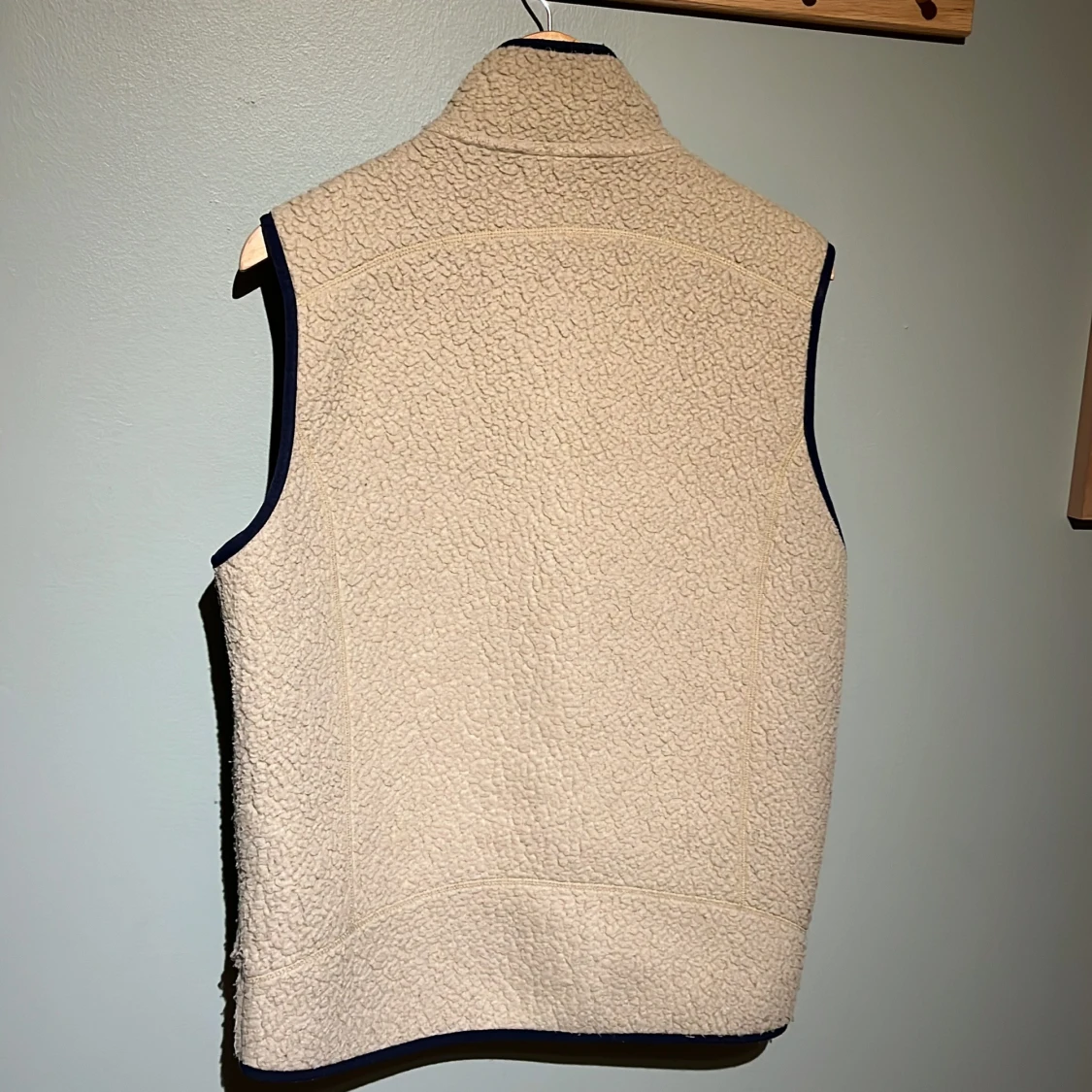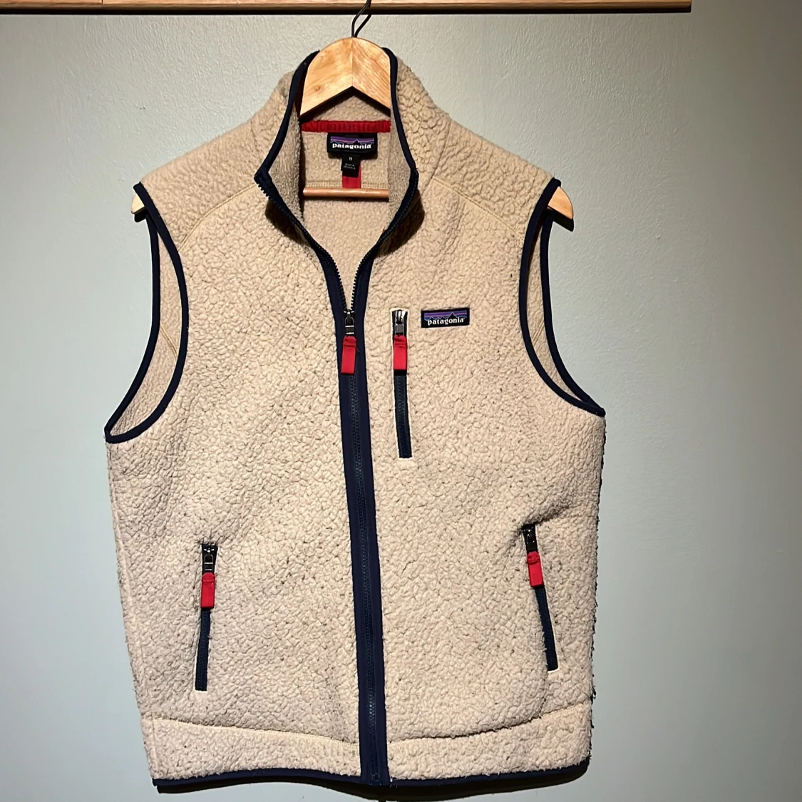 Säljer en snygg beige fleeceväst från Patagonia med marinblå detaljer och dragkedjor. Västen har en hög krage och praktiska fickor med röda dragkedjor. Perfekt för lager-på-lager under kyliga dagar. Säljer min eftertraktade patagonia väst som inte har några defekter förutom lite nopprar😊 Hör av dig vid frågor eller funderingar😃