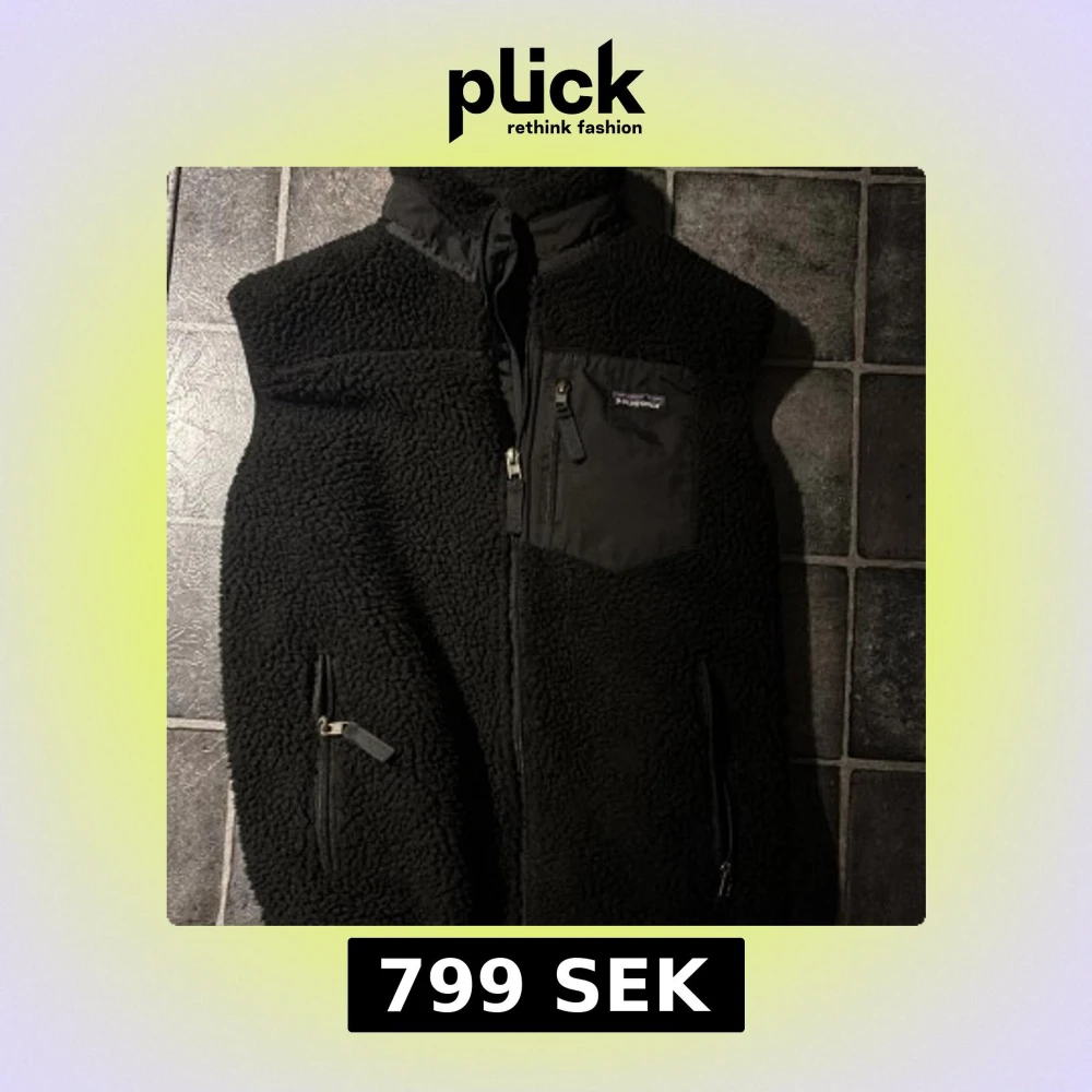 Svart fleeceväst från Patagonia med hög krage och flera praktiska fickor med dragkedja. Västen har ett mjukt, fluffigt material och detaljer i syntet på fickorna och axlarna. Perfekt för lager-på-lager och outdoor-vibes.