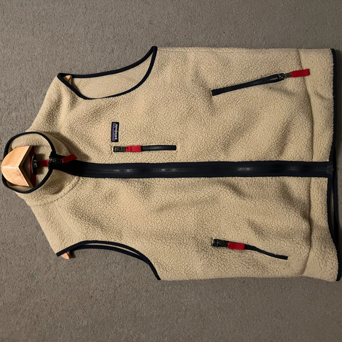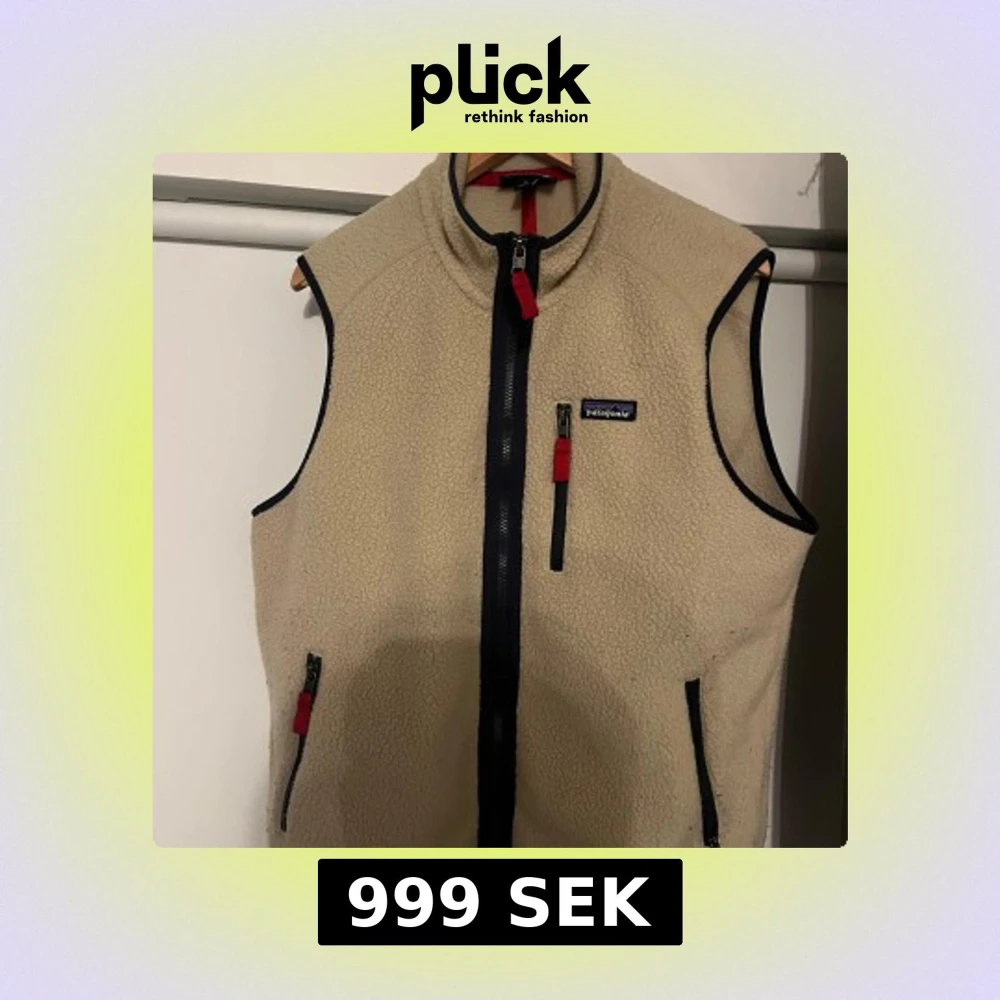 Säljer en beige fleeceväst från Patagonia med svarta detaljer och dragkedjor. Västen har en hög krage och praktiska fickor med dragkedja. Perfekt för lager-på-lager under kyligare dagar.(kvitto finns)