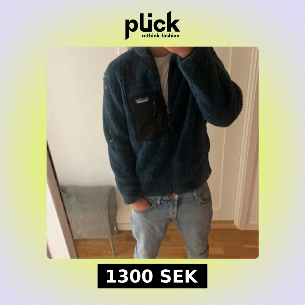 Mysig mörkblå fleecejacka från Patagonia med dragkedja och svart bröstficka med logga. Perfekt för kyliga dagar och enkel att matcha med jeans eller andra plagg.