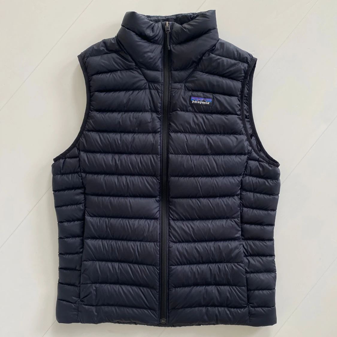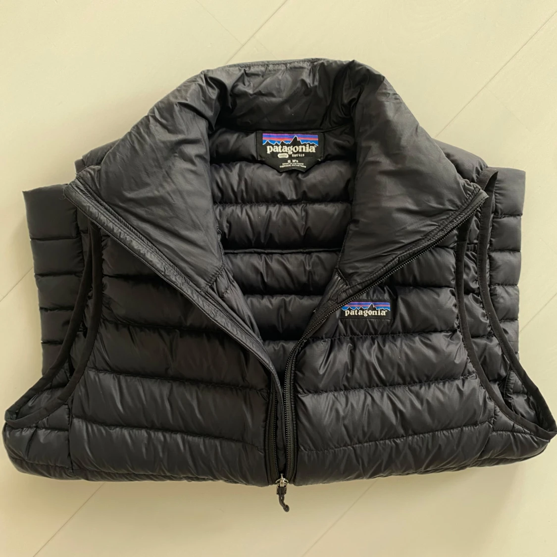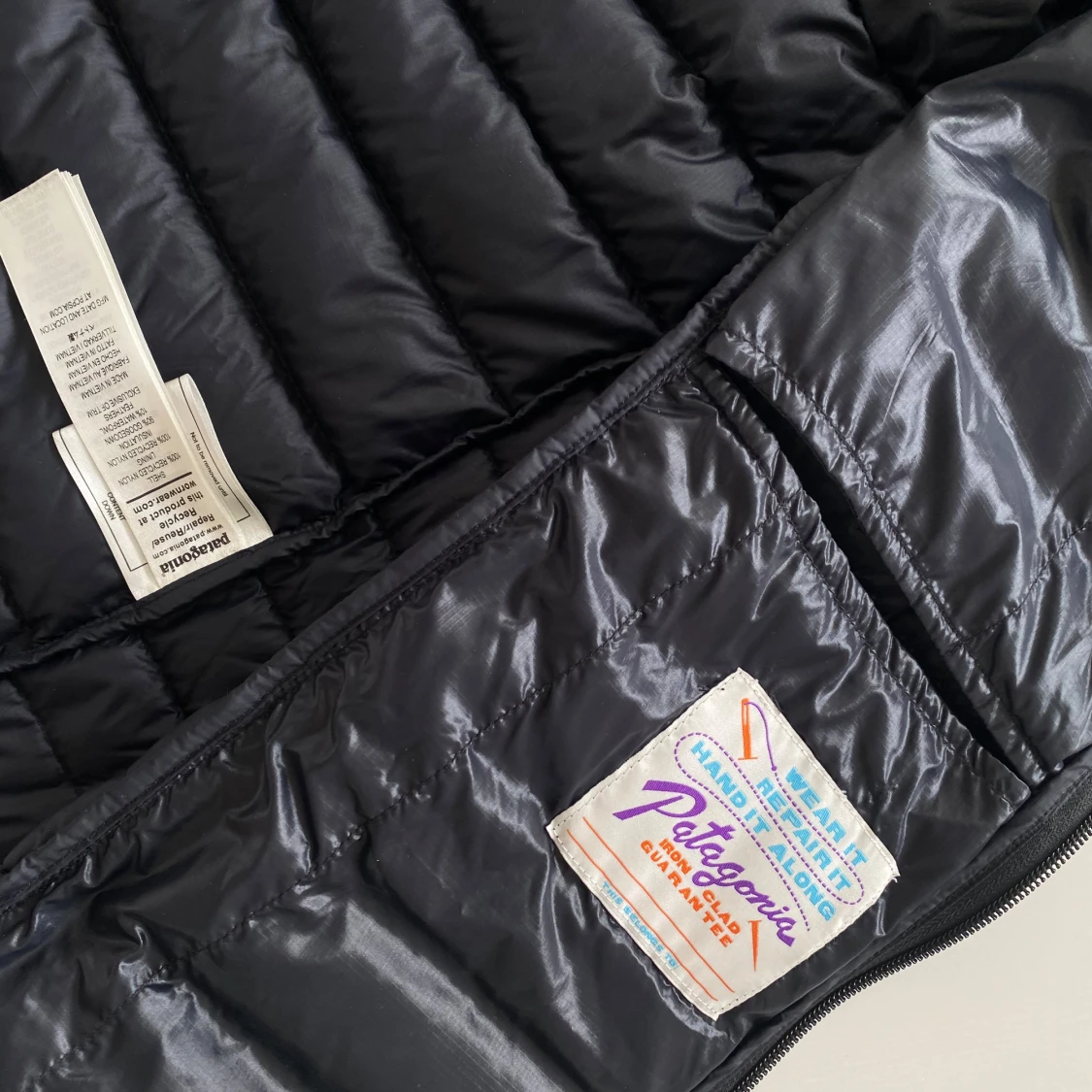 OANVÄND!!! Säljer en svart dunväst från Patagonia med quiltad design och dragkedja framtill. Västen har hög krage och klassisk passform, perfekt för lager-på-lager. Ikonisk Patagonia-logga på bröstet. Nypris 2499kr