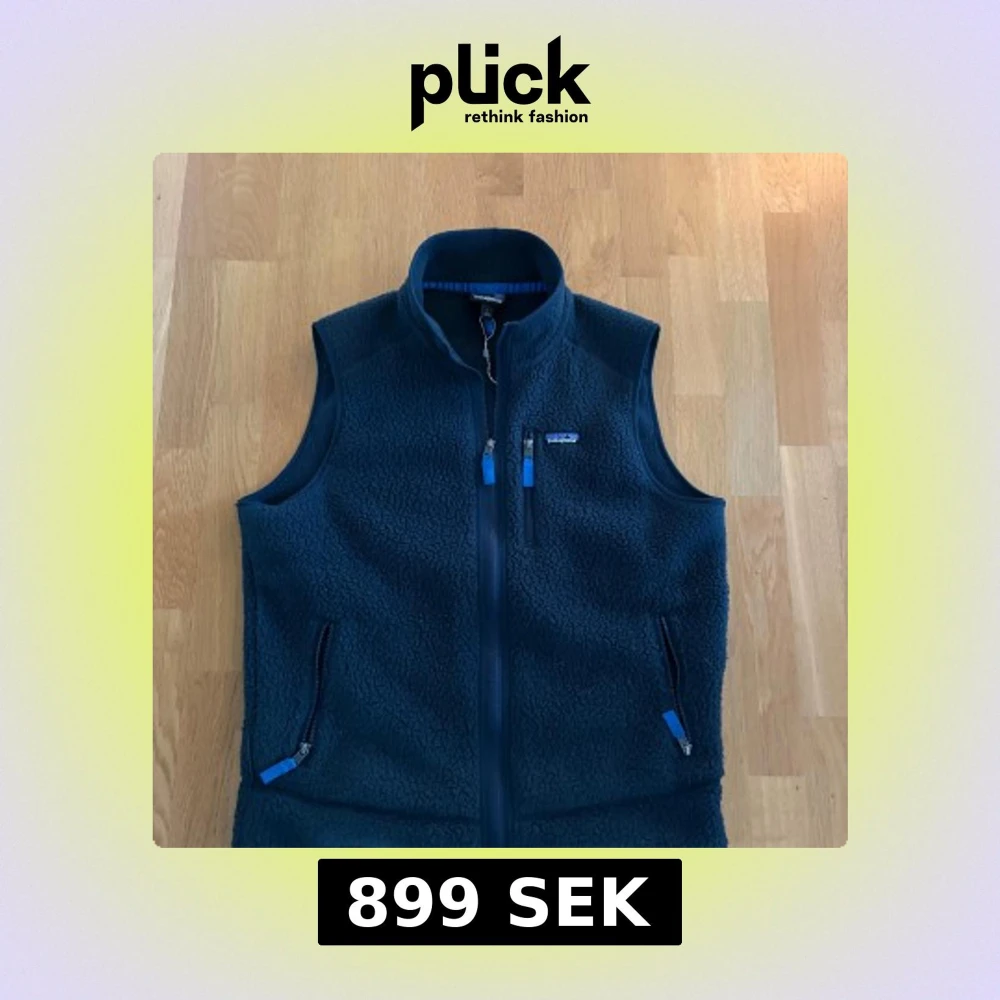 Mysig mörkblå fleeceväst från Patagonia med hög krage och tre fickor med dragkedja. Västen har en klassisk passform och är perfekt för lager-på-lager. Snygga blå detaljer på dragkedjorna och diskret logga på bröstet.