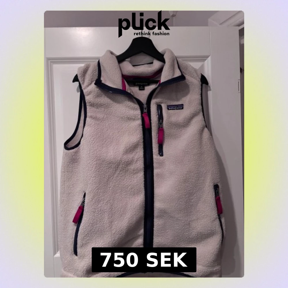 Säljer en beige fleeceväst från Patagonia i storlek M. Västen har marinblå detaljer, dragkedjor med röda band och hög krage. Utrustad med tre fickor med dragkedja och ett broderat Patagonia-märke på bröstet. Perfekt för lager-på-lager och chill utomhus.Helt ny aldrig använd.