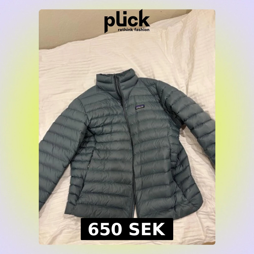 Snygg ljusblå dunjacka från Patagonia i storlek XL. Jackan har quiltad design, hög krage och dragkedja framtill. Tillverkad av nylon och fylld med gåsdun och fjädrar. Perfekt för kalla dagar och har en clean, sportig look.