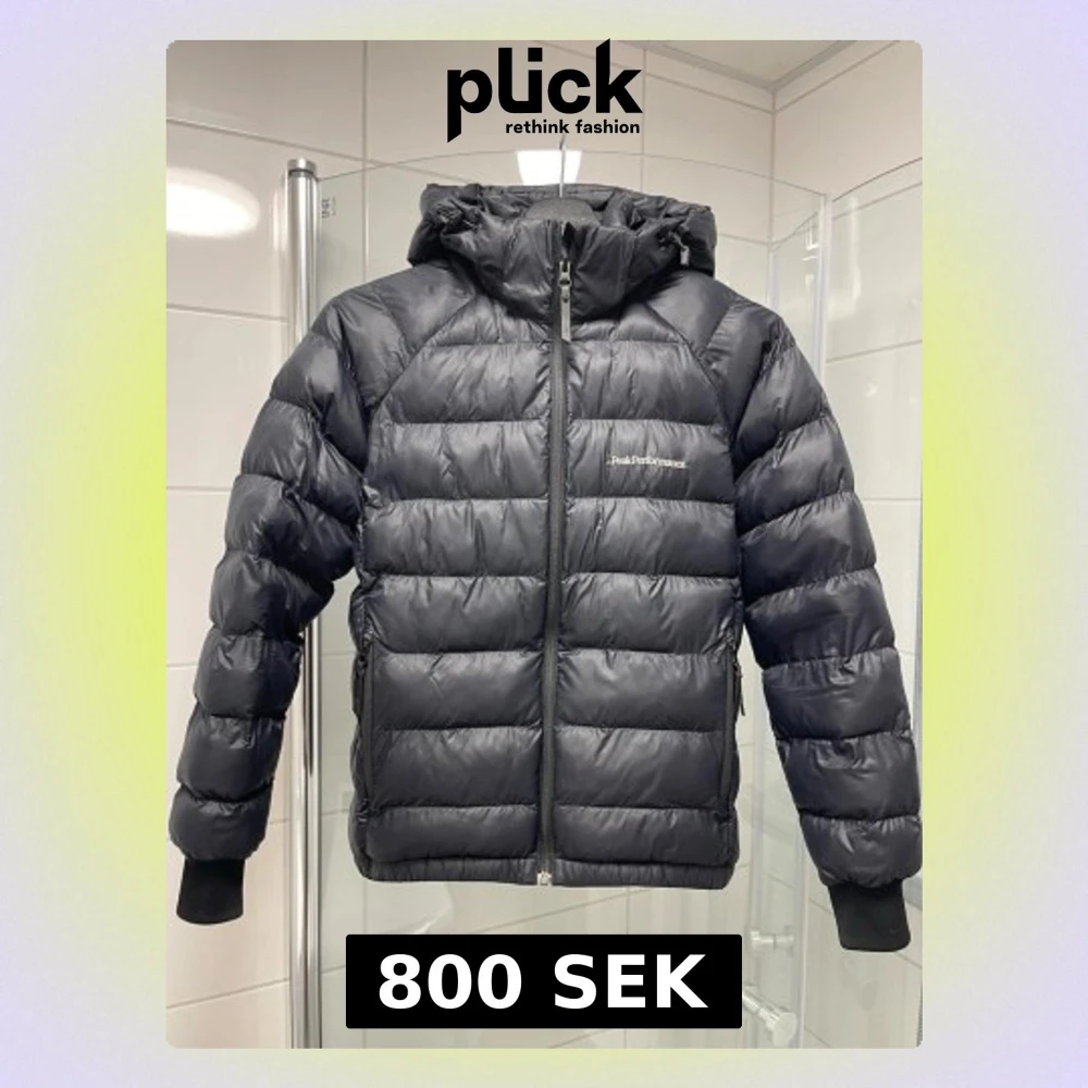 Säljer en svart dunjacka från Peak Performance med huva och dragkedja framtill. Jackan har ribbade muddar vid ärmsluten och två sidofickor med dragkedja. Perfekt för kalla dagar och riktigt snygg till alla outfits.