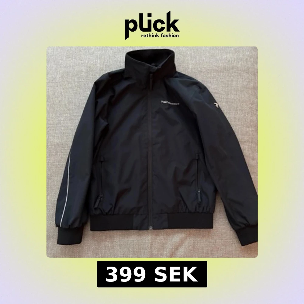 Snygg svart vindjacka från Peak Performance med dragkedja och hög krage. Jackan har långa ärmar med ribbade muddar och två praktiska fickor med dragkedja. Perfekt för blåsiga dagar.