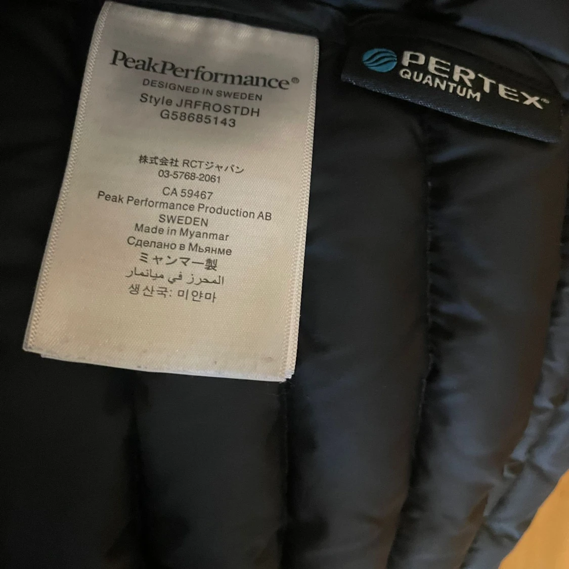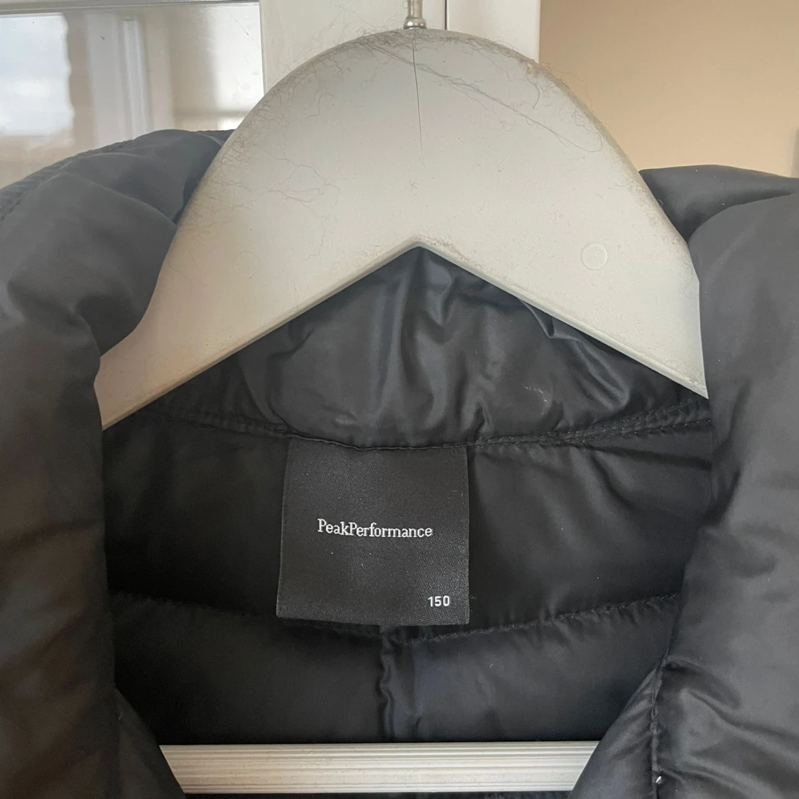 Säljer en svart dunjacka från Peak Performance i mycket bra skick. Jackan är quiltad och har en dragkedja framtill.