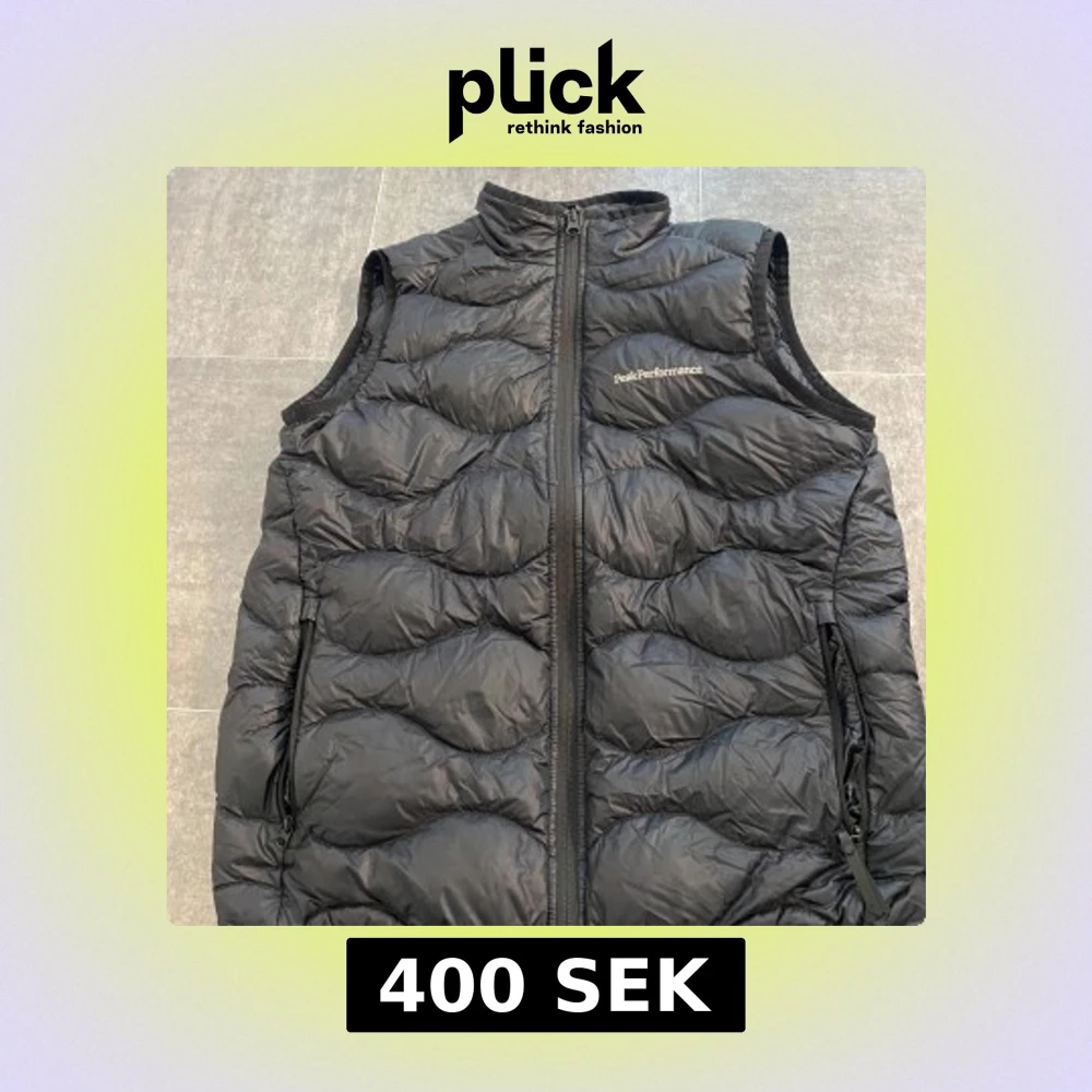 Svart dunväst från Peak Performance med vågformat quiltat mönster. Västen har hög krage, två dragkedjeförsedda fickor och hel dragkedja framtill. Perfekt för lager-på-lager och snygg till både hoodie och t-shirt.