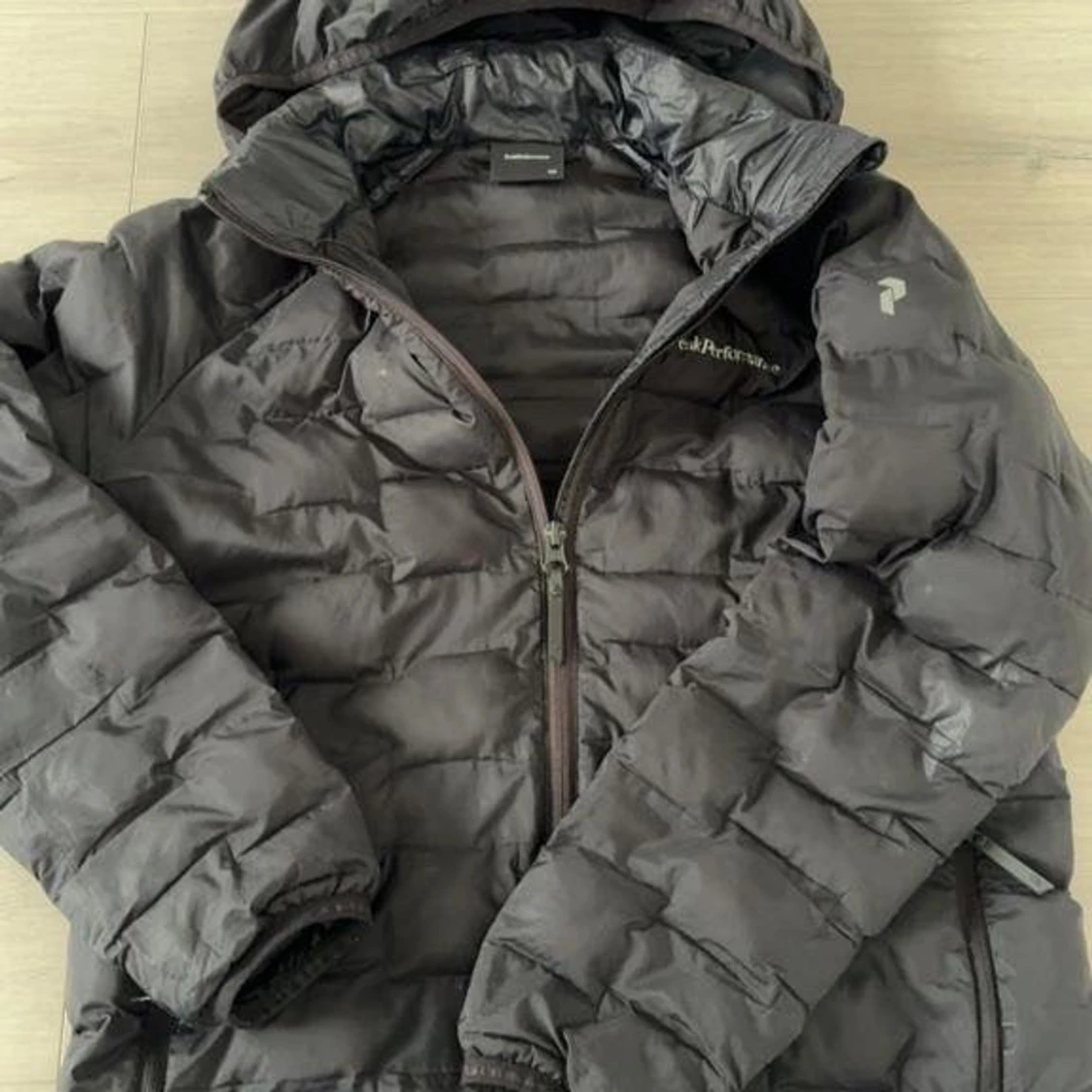 Snygg svart dunjacka från Peak Performance med huva och dragkedja framtill. Jackan är quiltad och har en stilren look, perfekt för kalla dagar. Klassisk passform och diskret logga på bröstet. Fodrad för extra värme och komfort.