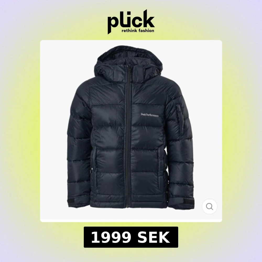Säljer en mörkblå dunjacka från Peak Performance med huva och dragkedja framtill. Den funkar perfekt för kalla dagar då den är en varm dunjacka.