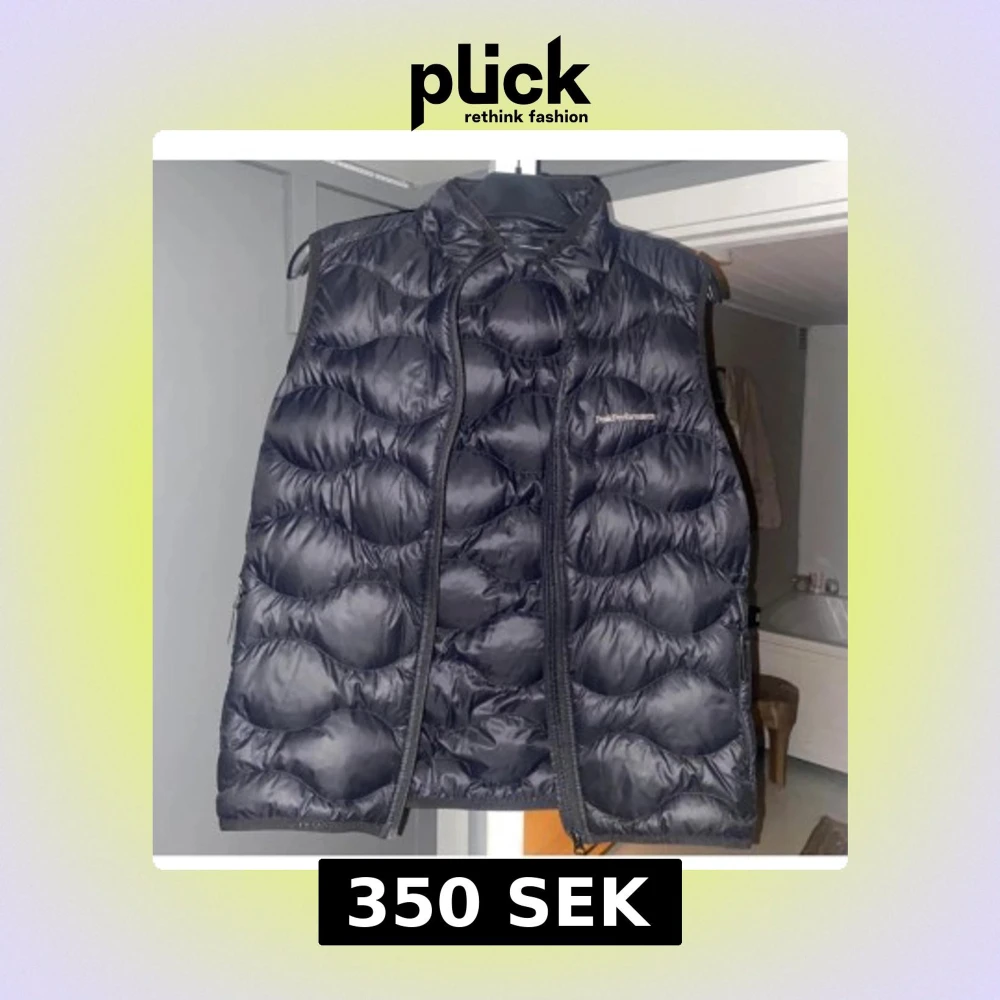 Säljer en svart dunväst från Peak Performance, modell JR Helium Down Vest. Västen har quiltad design, hög krage och dragkedja framtill. Perfekt för lager-på-lager och riktigt snygg till både hoodie och t-shirt.
