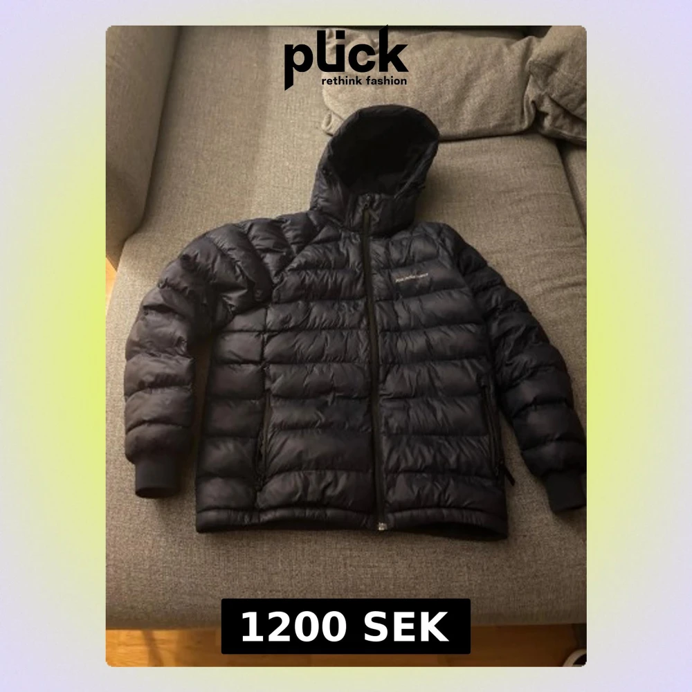 Säljer en mörkblå pufferjacka från Peak Performance med huva och dragkedja framtill. Jackan har quiltad design, två sidofickor med dragkedja och ribbade muddar vid ärmslut. Perfekt för kalla dagar och har en clean, sportig look.