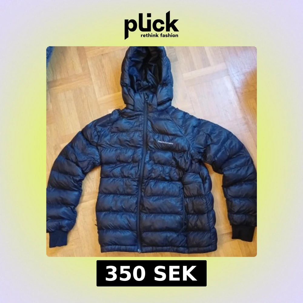 Säljer en svart jacka från Peak Performance med huva och dragkedja. Jackan är quiltad och har en klassisk pufferlook, perfekt för kalla dagar. Loggan sitter på bröstet och jackan har långa ärmar samt muddar vid handlederna. Hör av er med frågor eller snabb affär. Pris kan diskuteras