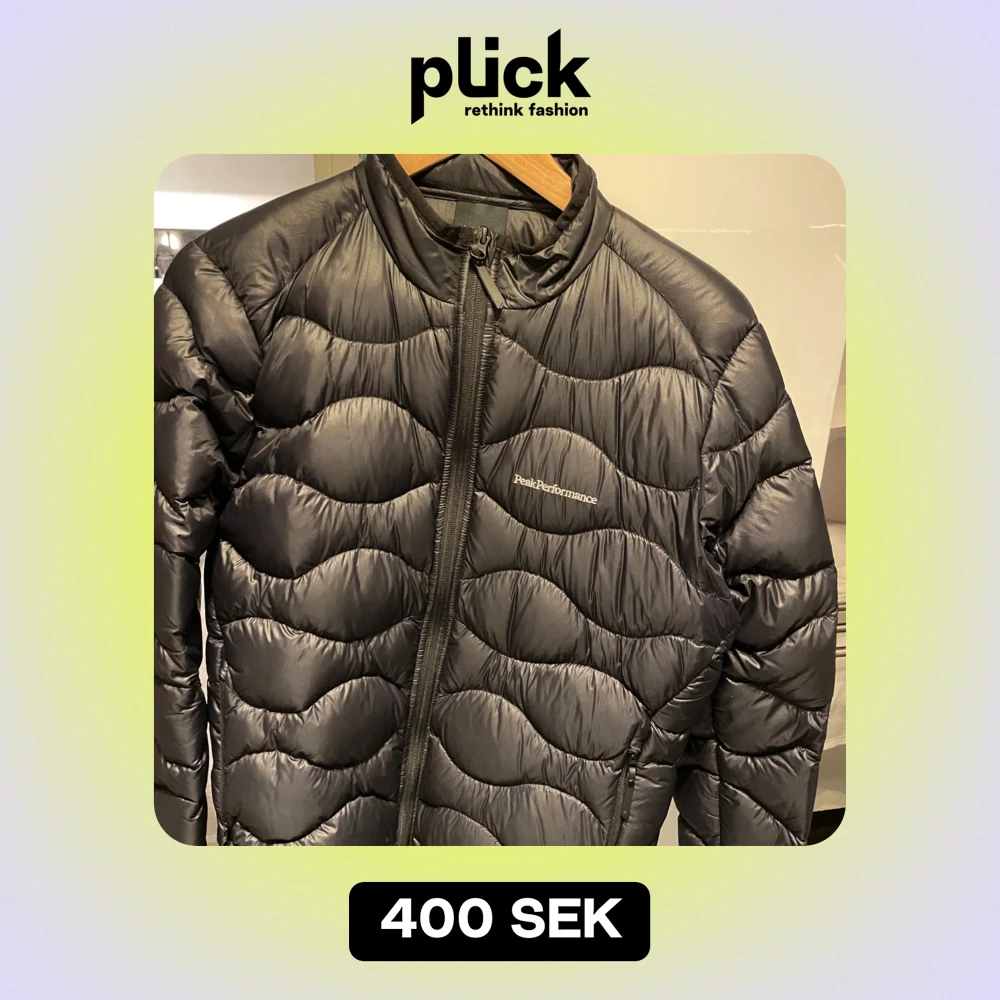 Säljer en snygg svart dunjacka från Peak Performance. Den har en quiltad design med dragkedja framtill och är perfekt för kyliga dagar. Jackan är i mycket bra skick och passar både till vardags och utomhusaktiviteter. Perfekt för höst och vinter!
