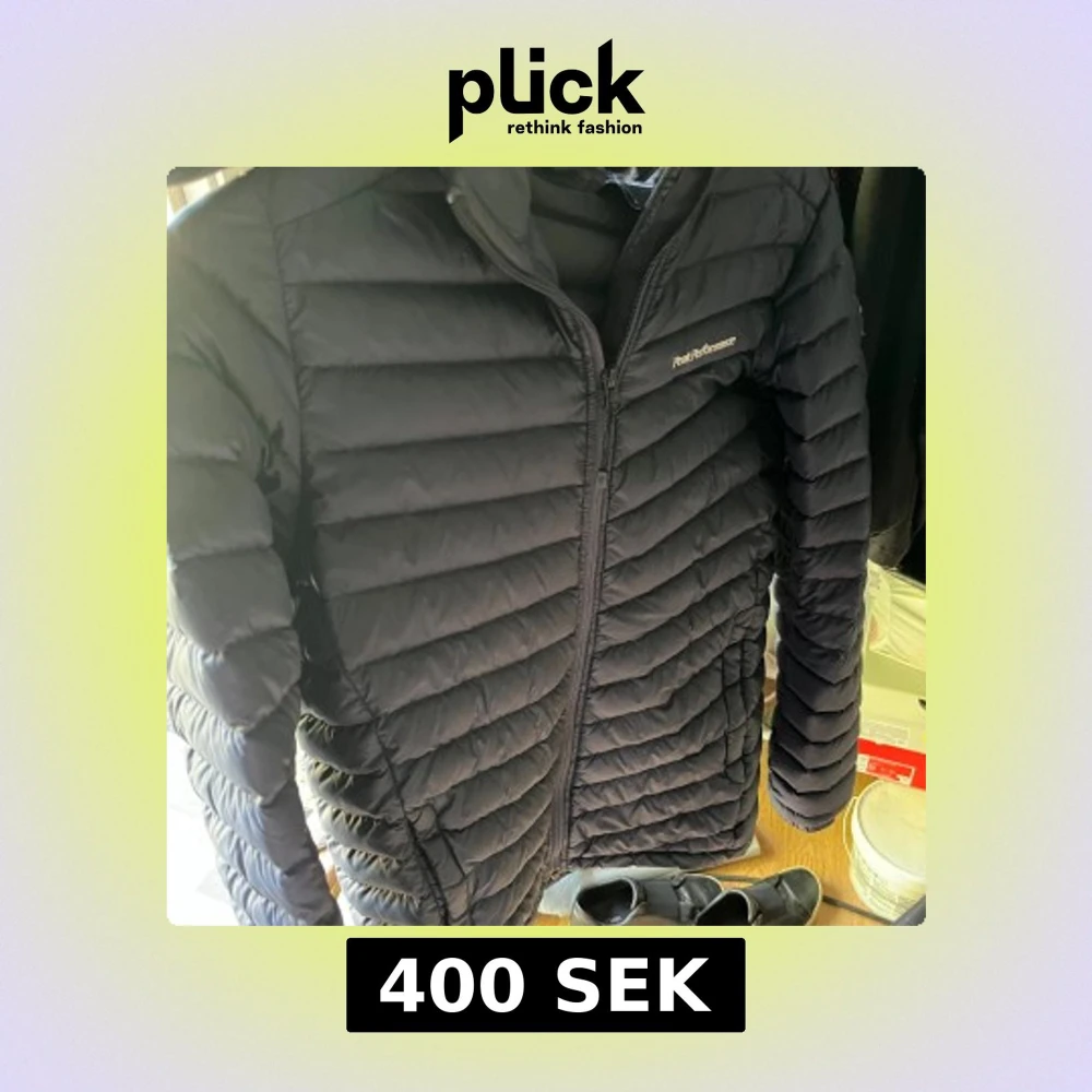 Säljer en marin blå dunjacka från Peak Performance med horisontella sömmar och dragkedja framtill. Jackan har en clean look, hög krage och huva. Perfekt för kyliga dagar och enkel att matcha med allt. Klassisk och stilren design.