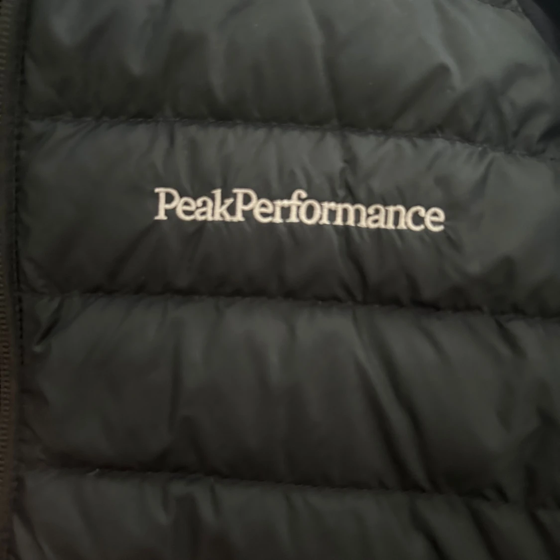 Svart pufferjacka från Peak Performance med quiltad framsida och broderad logga på bröstet. Jackan har huva, dragkedja och släta ärmar med logotyp på ena ärmen. Perfekt för kyliga dagar och snygg till streetwear passar också m