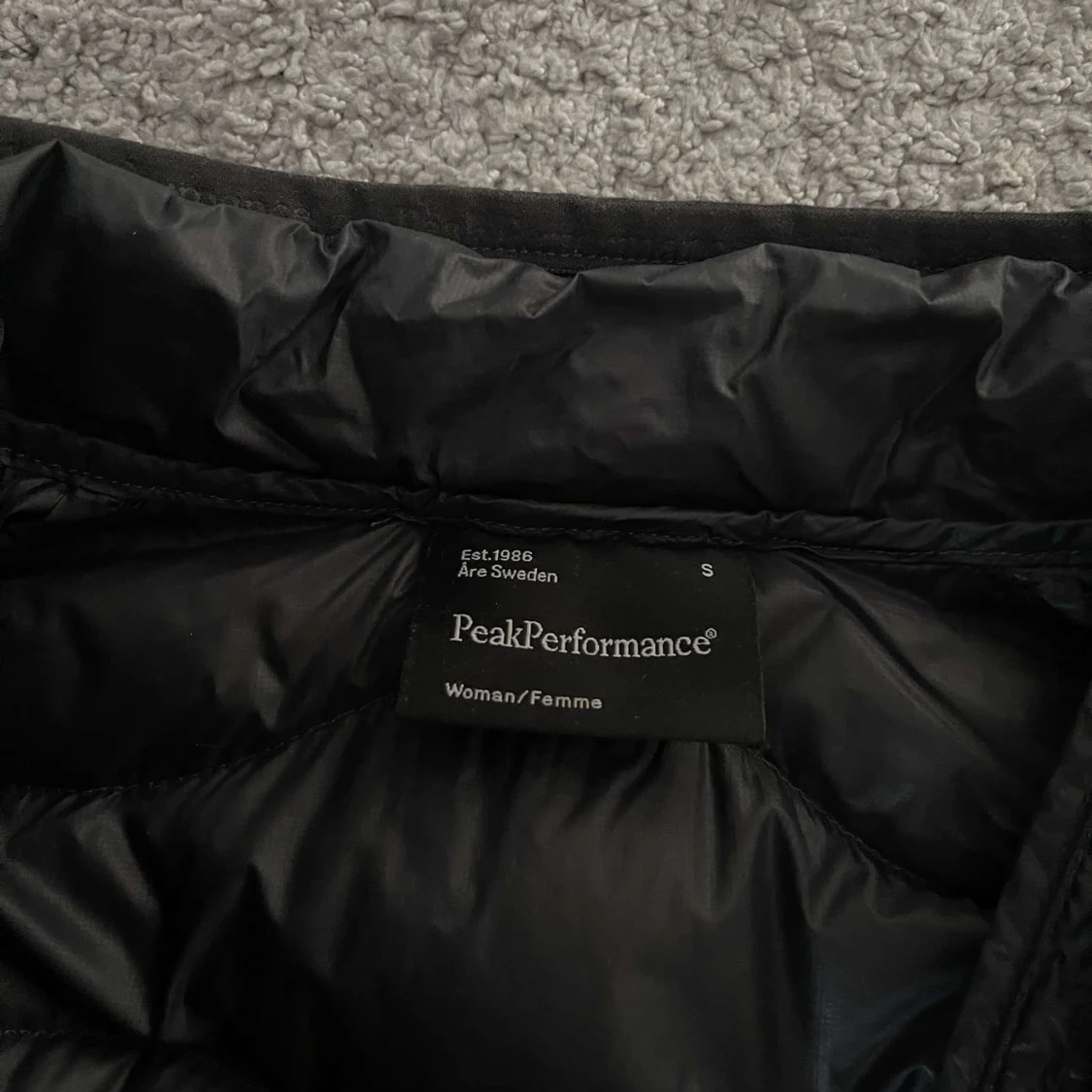 Snygg svart dunjacka från Peak Performance med dragkedja och praktiska fickor. Perfekt för kyliga dagar med sin quiltade design som håller värmen. Jackan har en stilren look och är lätt att matcha med olika outfits.