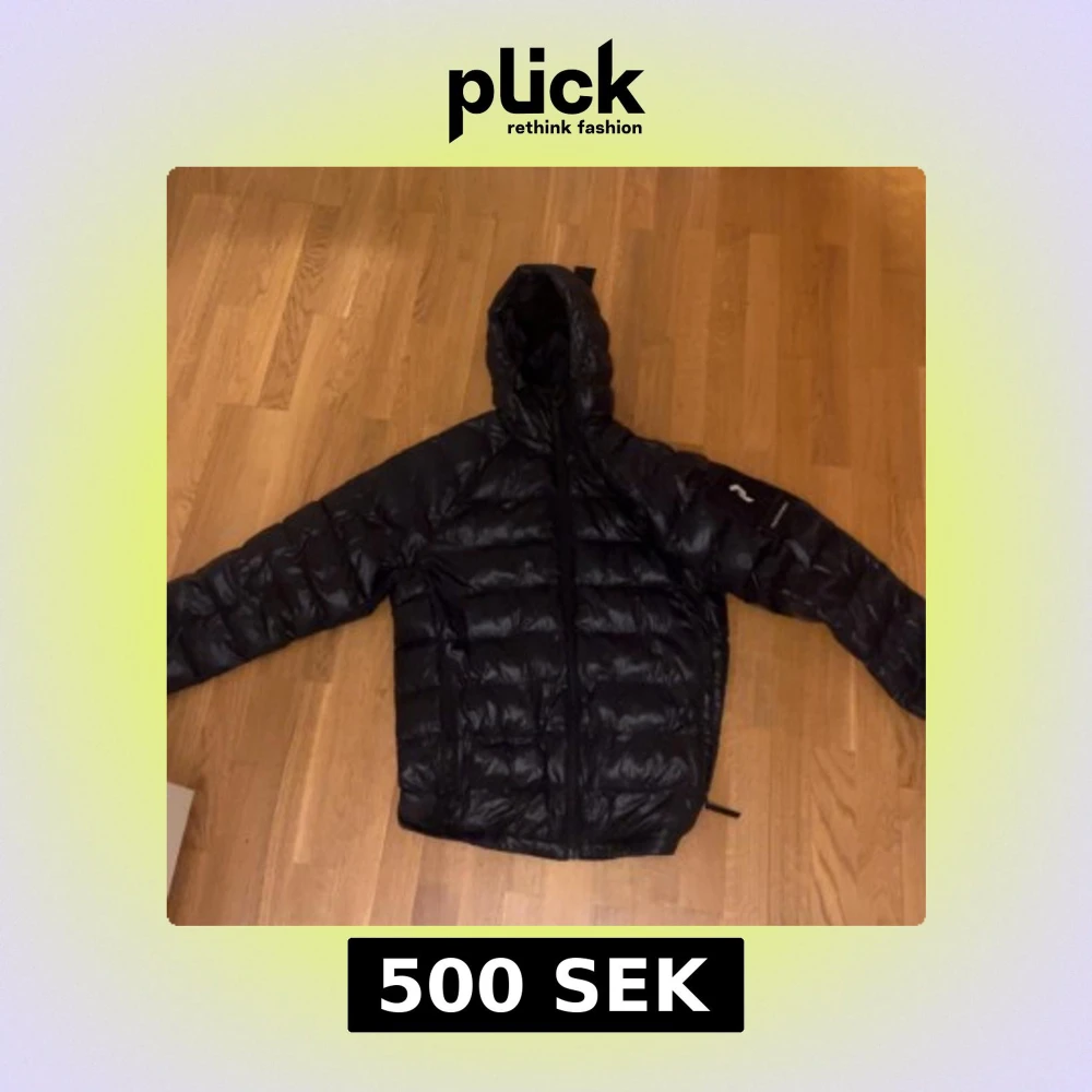 Säljer en svart Peak dunjacka med huva och dragkedja. Jackan har en klassisk pufferstil med långa ärmar och quiltad design. Säljes då jag ej använder
