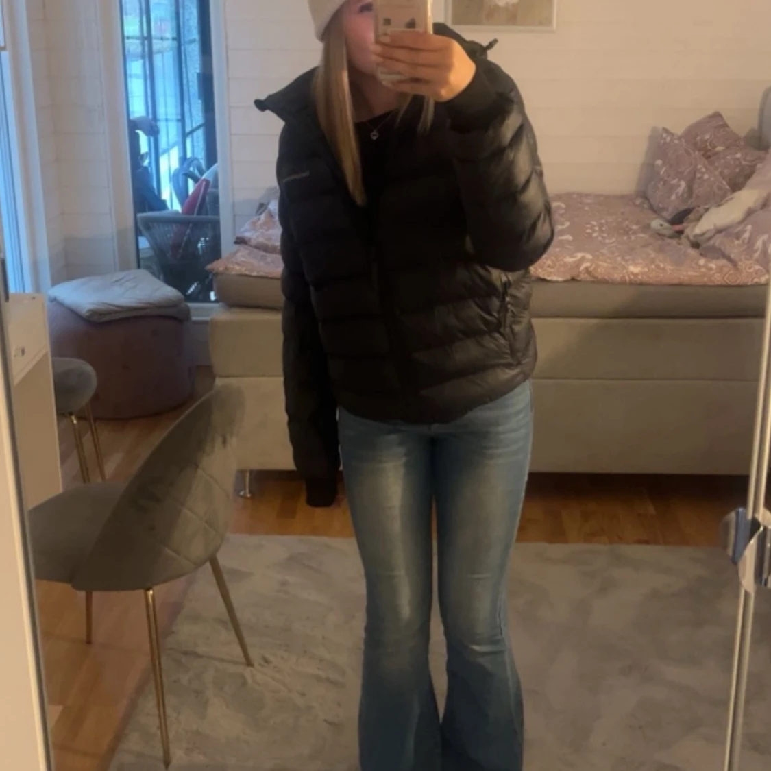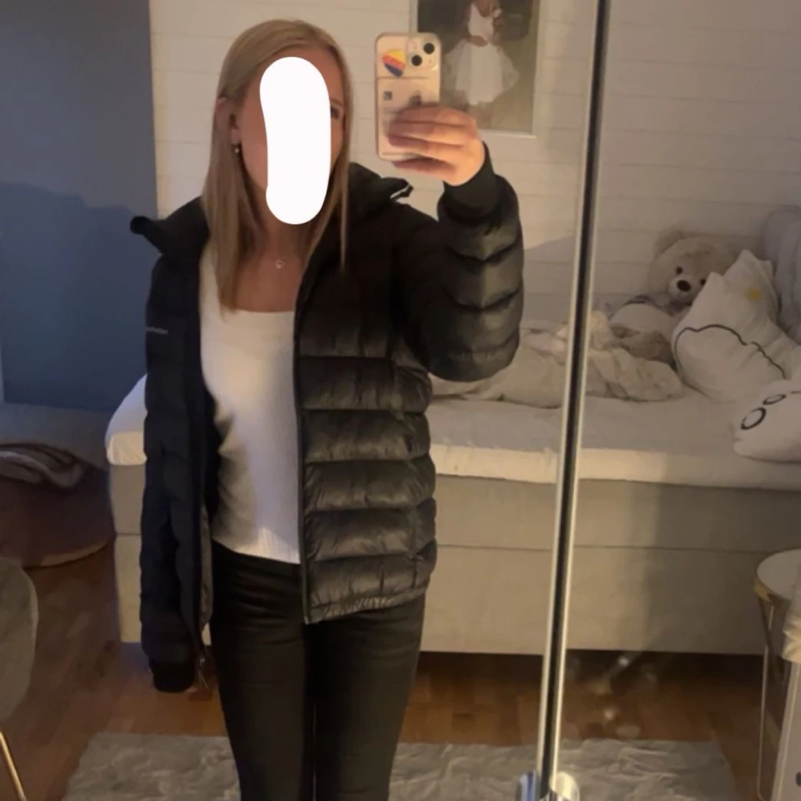 Säljer denna jacka pågrund av att den inte används länge, köpt förra året för 2100kr. Den är storlek 170 men passar mig som har S/M annars. Det är små lagade skador (se sista bilden) men de är inget man tänker på💞priset kan diskuteras ❤️