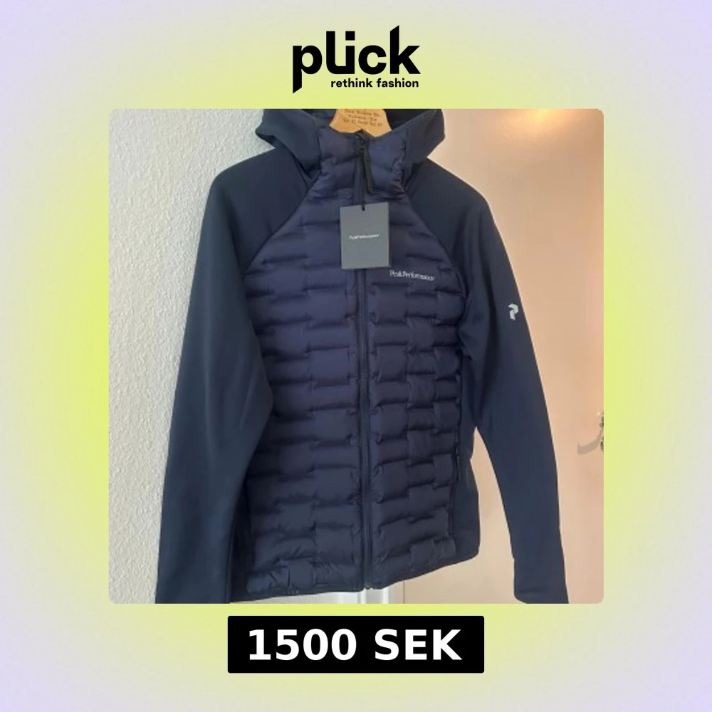 Mörkblå pufferjacka från Peak Performance med huva och hel dragkedja. Jackan har quiltad framsida och rygg, släta ärmar och diskret logga på bröstet och ärmen. Perfekt för kyliga dagar och har en sportig, stilren look. Helt ny med prislapp i storlek L