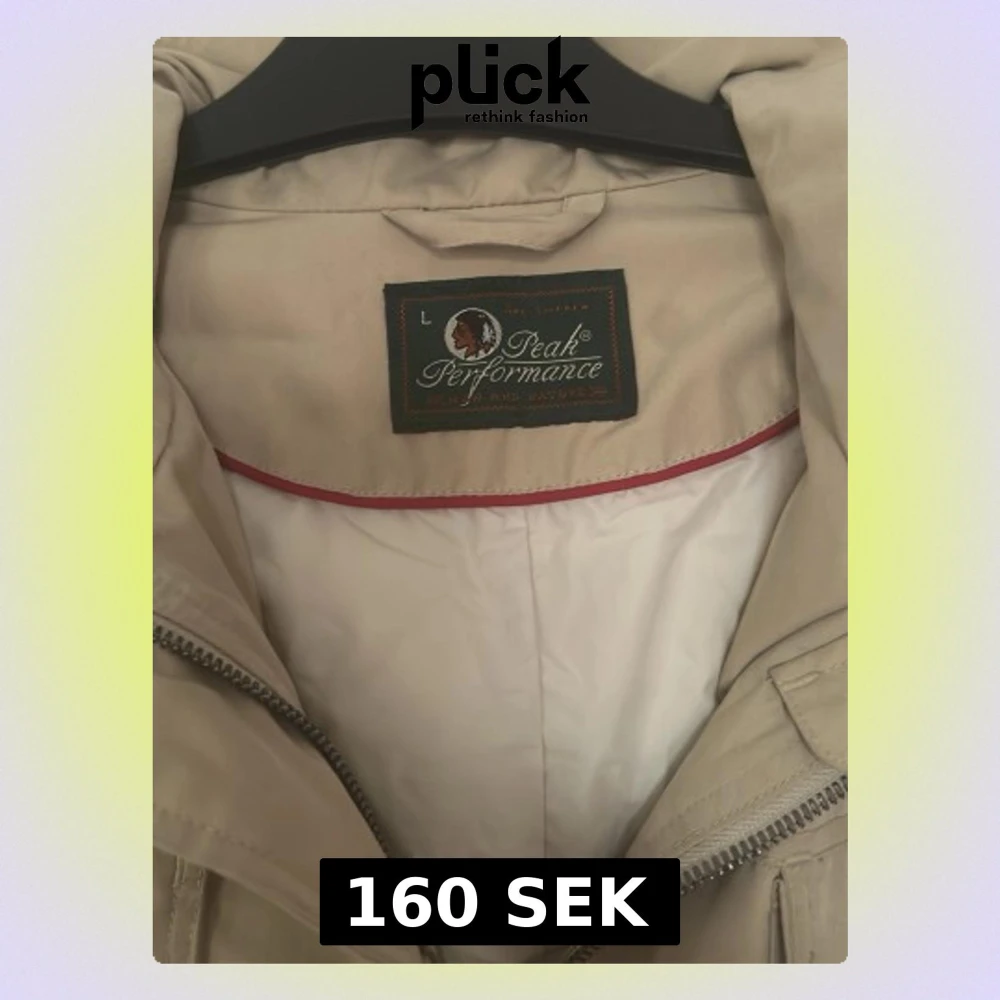 Säljer en beige vindjacka från Peak Performance i storlek L. Jackan har fyra fickor framtill med lock och knappar, dragkedja och hög krage. Perfekt för blåsiga dagar och enkel att matcha med olika outfits.
