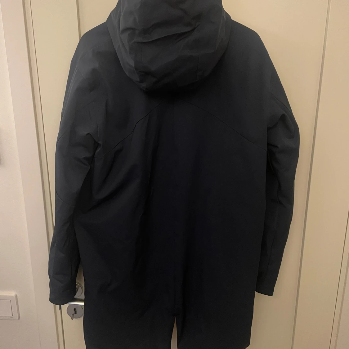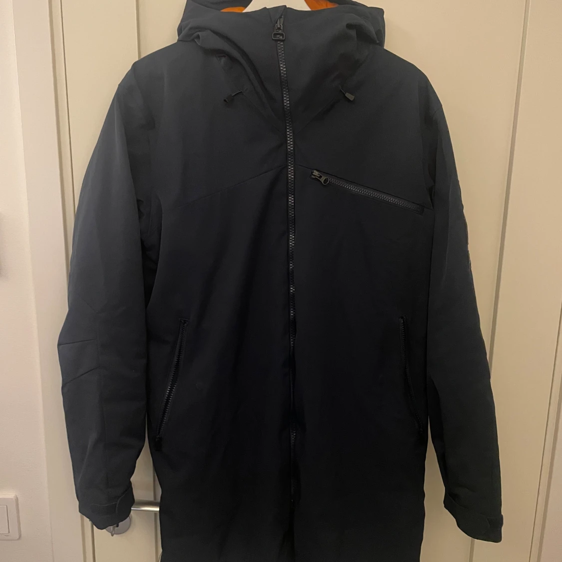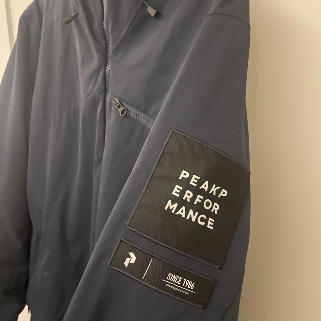 Snygg mörkblå parkas från Peak Performance med huva och flera dragkedjeförsedda fickor. Jackan har en stilren design med logotyp-patch på ärmen och är tillverkad i slitstarkt syntetmaterial. Perfekt för kalla dagar och har en längre passform.