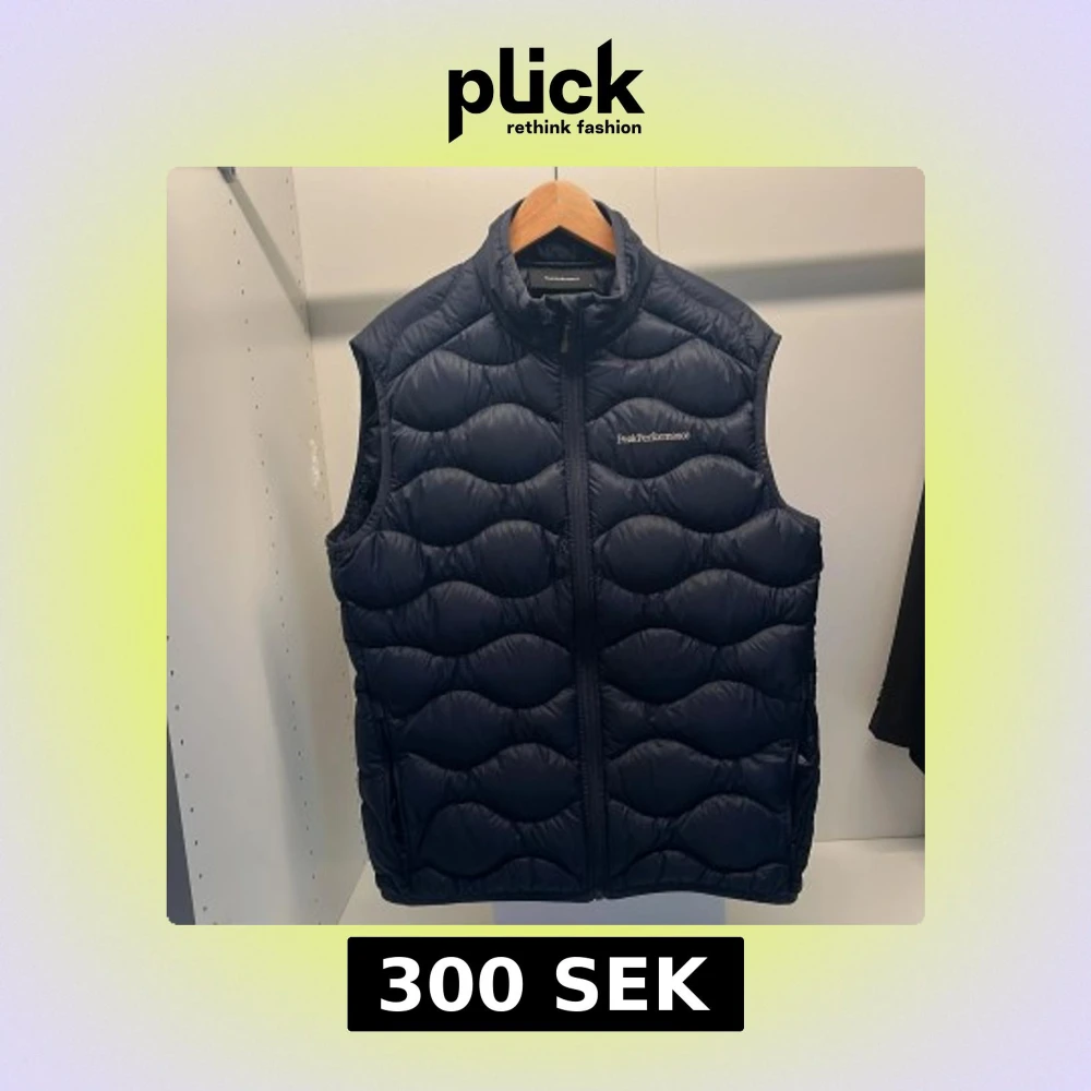 Snygg mörkblå dunväst från Peak Performance. Storlek L men passar M