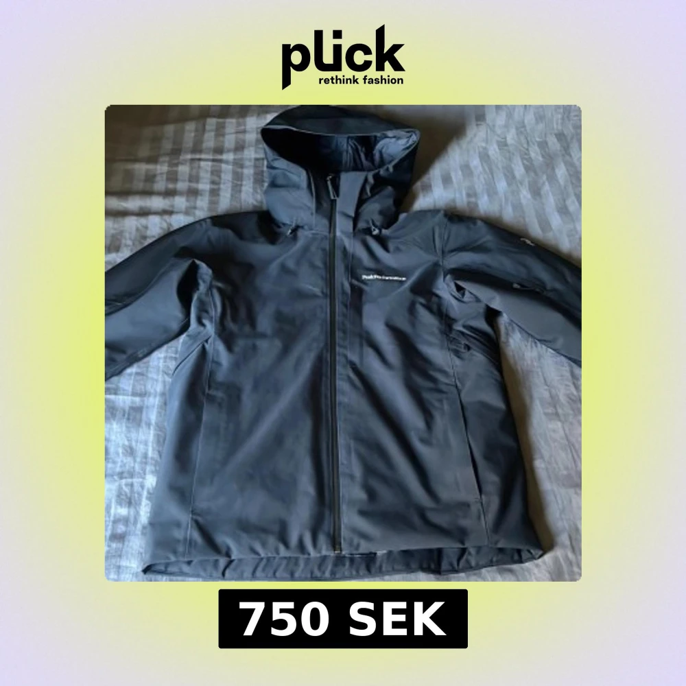 Säljer en svart skaljacka från Peak Performance med huva och hel dragkedja framtill. Jackan har diskret logga på bröstet och är tillverkad i ett slitstarkt syntetmaterial. Perfekt för utomhusaktiviteter och vardagsbruk. Nypris: 2845kr från Zalando