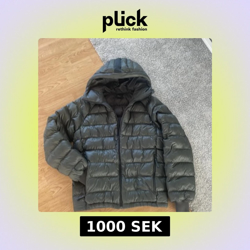 Snygg svart dunjacka från Peak Performance i storlek M. Jackan har huva, dragkedja framtill och två sidofickor med dragkedja. Klassisk pufferstil med broderad logga på bröstet och ärmen. Perfekt för kalla dagar när du vill hålla stilen.