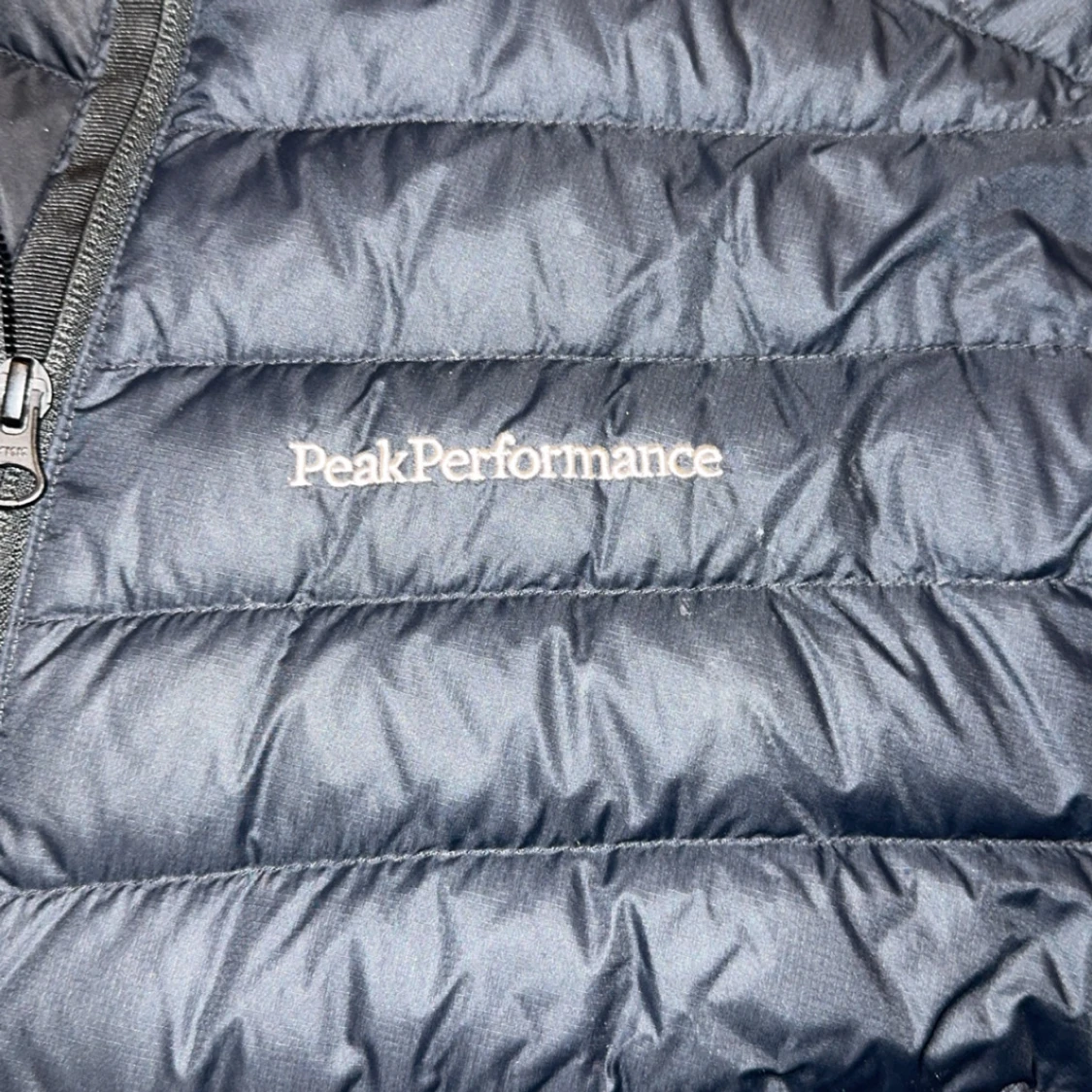 Snygg mörkblå dunjacka från Peak Performance med huva och dragkedja framtill. Jackan har quiltad design och logga på bröstet samt är tillverkad i lätt och slitstark polyester. Perfekt för kyliga dagar och har en clean look som funkar till det mesta.