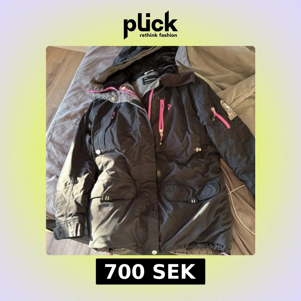 Peak Performance parkajacka i svart med rosa dragkedjor och detaljer. Jackan har flera fickor, huva och ett stort broderat märke på ärmen. Insidan är fodrad med mjuk svart fleece för extra värme. Perfekt för kalla dagar och outdoor.