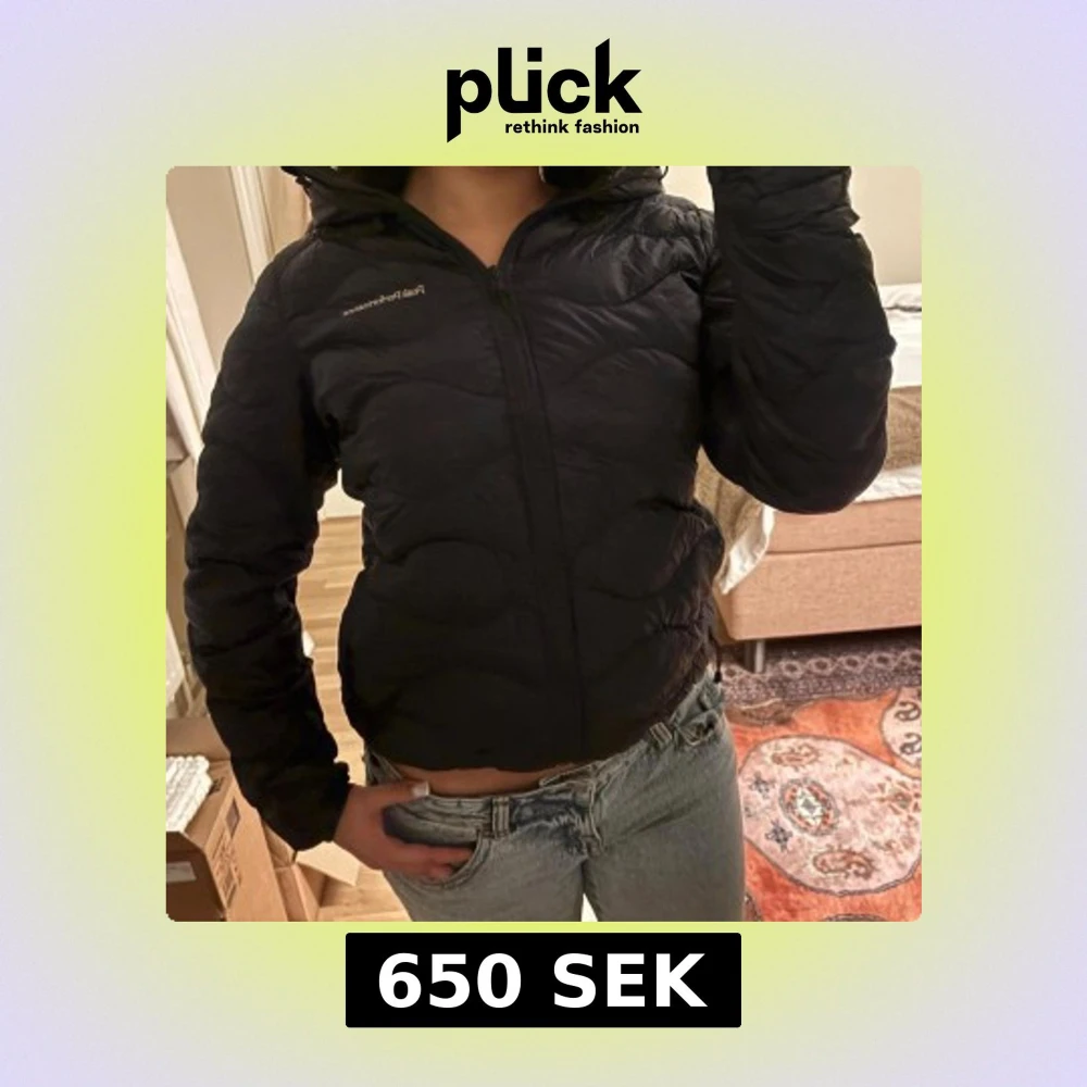 Säljer en svart dunjacka från Peak Performance med quiltad design och dragkedja framtill. Jackan har en figurnära passform och huva, perfekt för kyliga dagar. Lätt och smidig att bära, passar till det mesta och är enkel att styla.