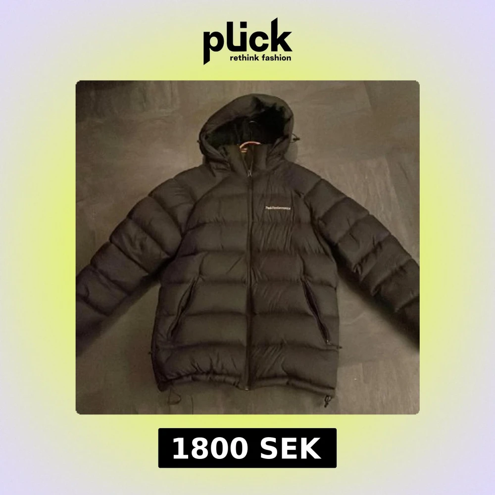 Säljer en svart dunjacka från Peak Performance med huva och dragkedja. Jackan har två stora fickor med dragkedja på utsidan och en innerficka. Puffig design och klassisk logga på bröstet. Perfekt för kalla dagar och riktigt skön att bära.