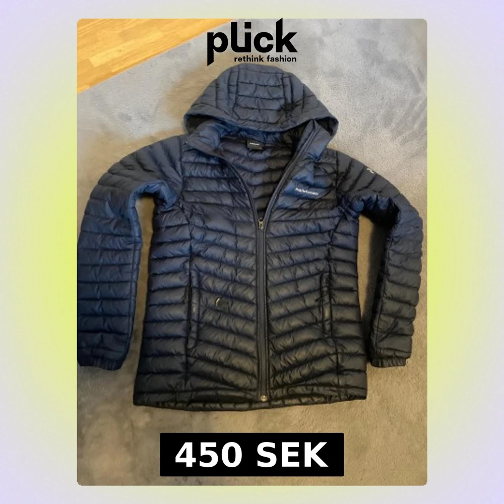 Snygg mörkblå dunjacka från Peak Performance med huva och hel dragkedja. Jackan har quiltad design, två sidofickor med dragkedja och logga på bröstet. Perfekt för kalla dagar och har en clean, sportig look som funkar till streetwear.170