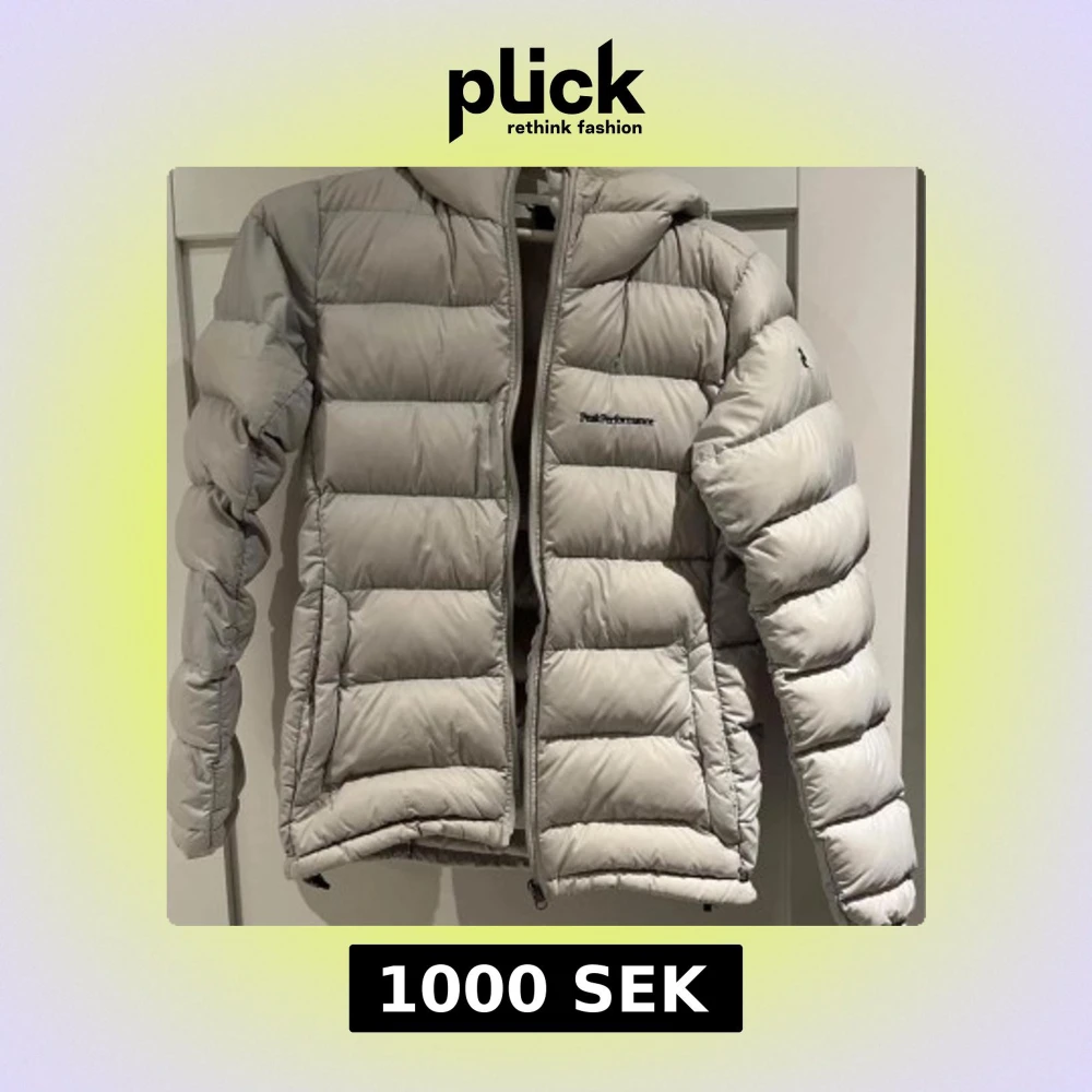 Snygg och varm grå dunjacka från Peak Performance. Jackan har en dragkedja framtill och en huva för extra skydd mot kyla. Perfekt för kyliga dagar.