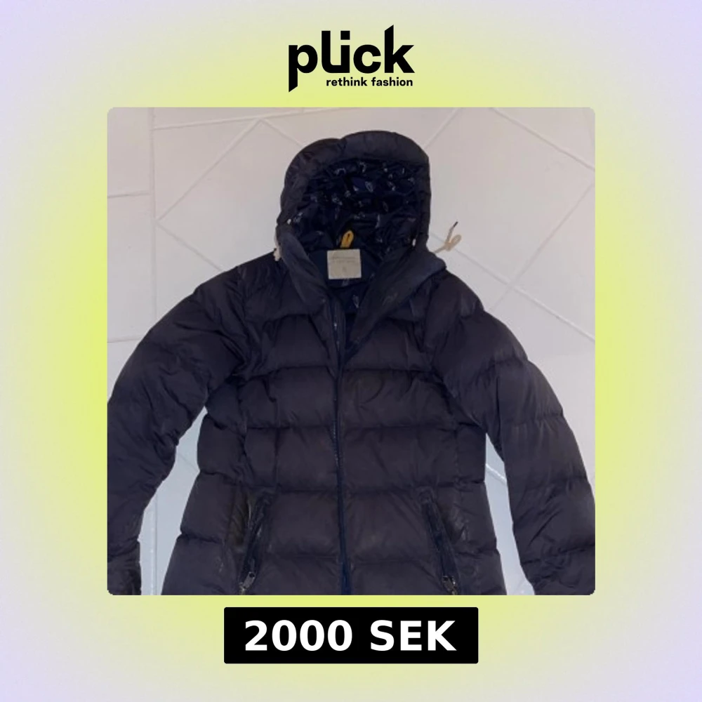 Säljer en svart dunjacka från Peak Performance med huva och dragkedja. Jackan har ett stilrent mönster på insidan och praktiska fickor med dragkedjor. Perfekt för kyliga dagar!