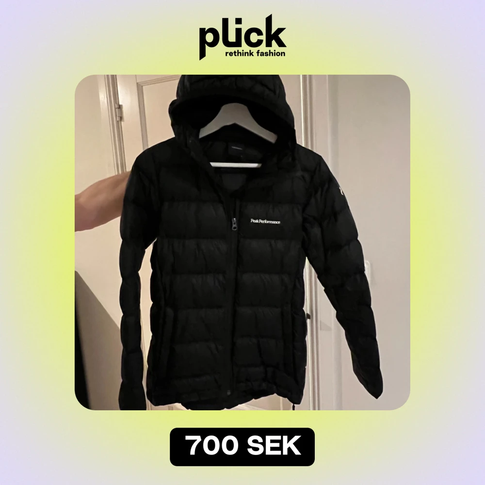 Säljer en svart dunjacka från Peak Performance i mycket bra skick. Jackan har en dragkedja framtill och en praktisk huva. Perfekt för kalla vinterdagar!! ❄️❄️