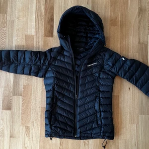 Lätt och värmande dunjacka som kan användas för sig eller som ett värmande mellanlager under en skaljacka. Dragkedjan på höger ficka är trasig, går ej att stänga. Annars fint skick